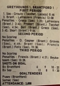 November 10 1983- Brantford @ North Bay (3-3 Tie)