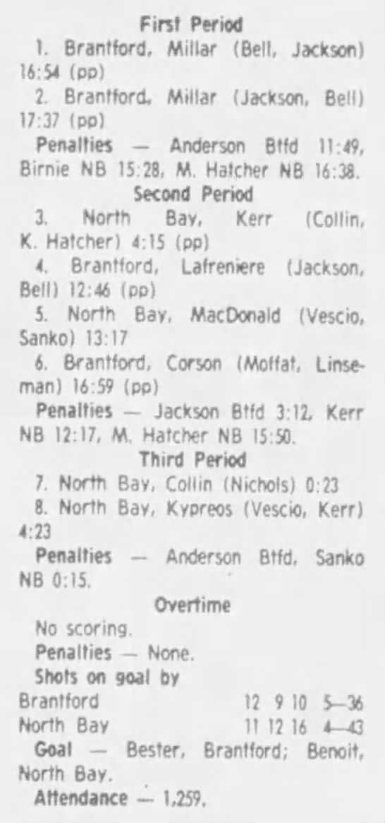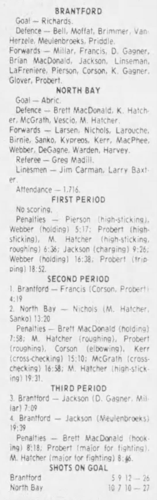 January 26 1984- Brantford @ North Bay