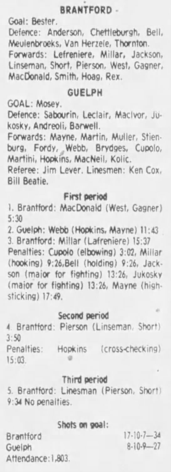 March 4 1984- Brantford @ Guelph