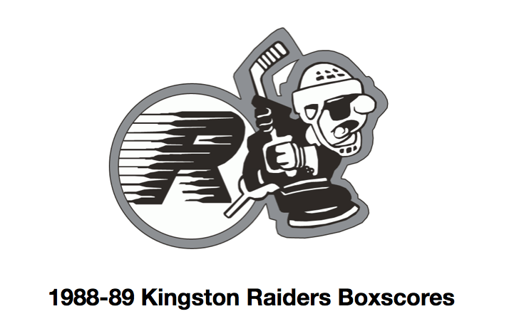 Here are the boxscores from the 1988-89 Kingston Raiders season. Most boxscores from this season are here (65/66 boxscores). If you have any of the games that are missing, please send them my way.