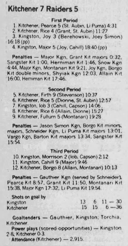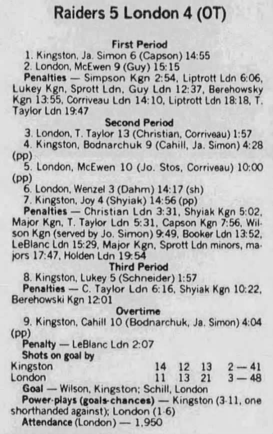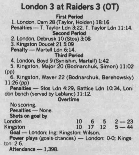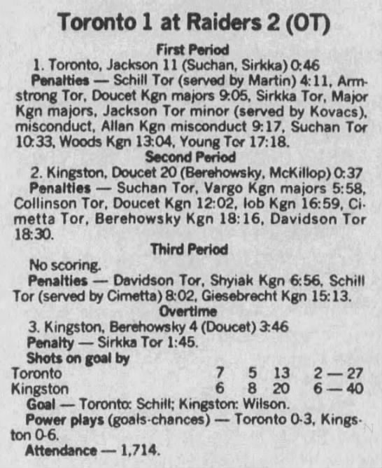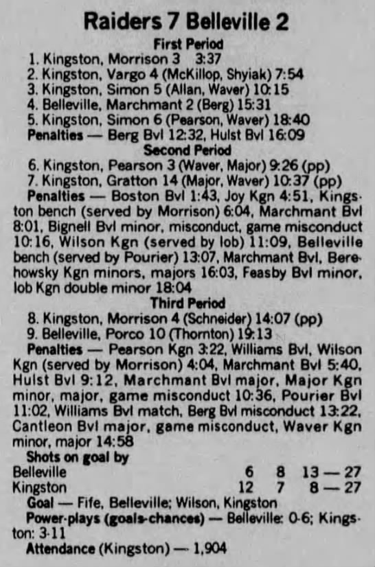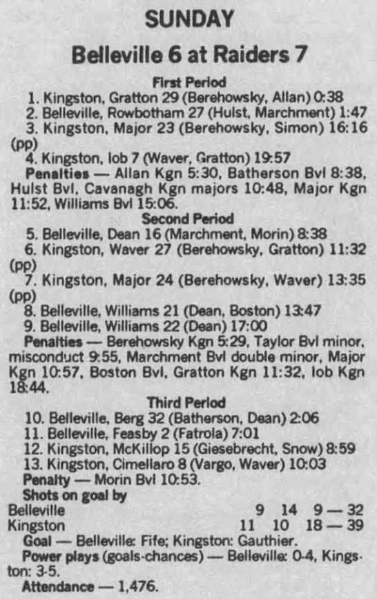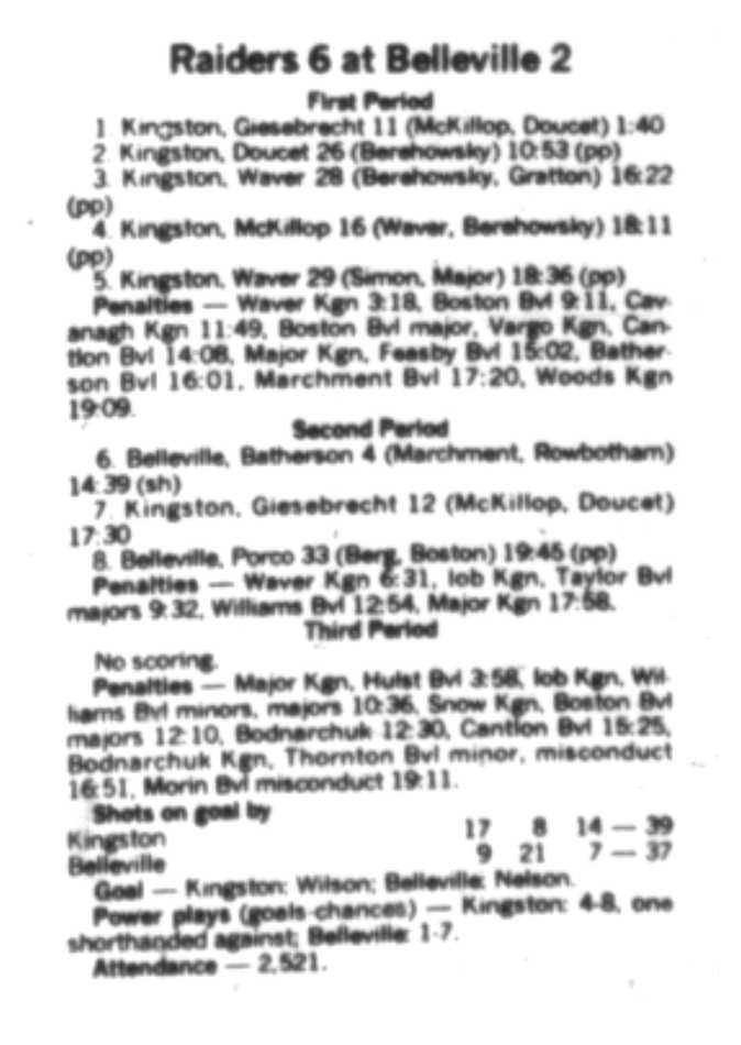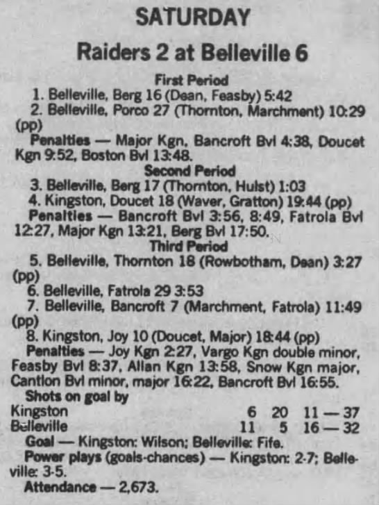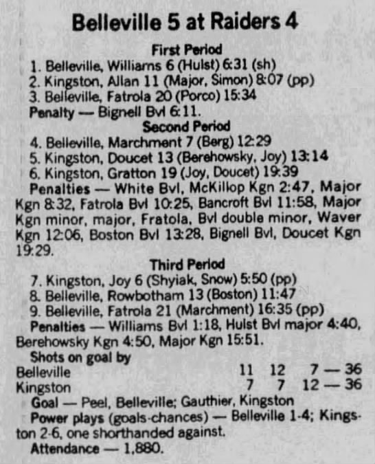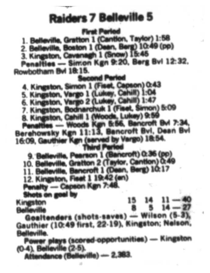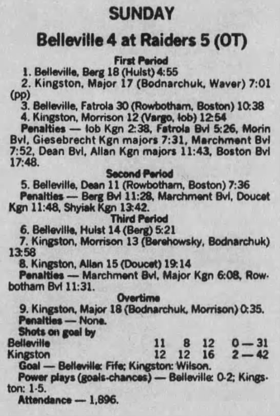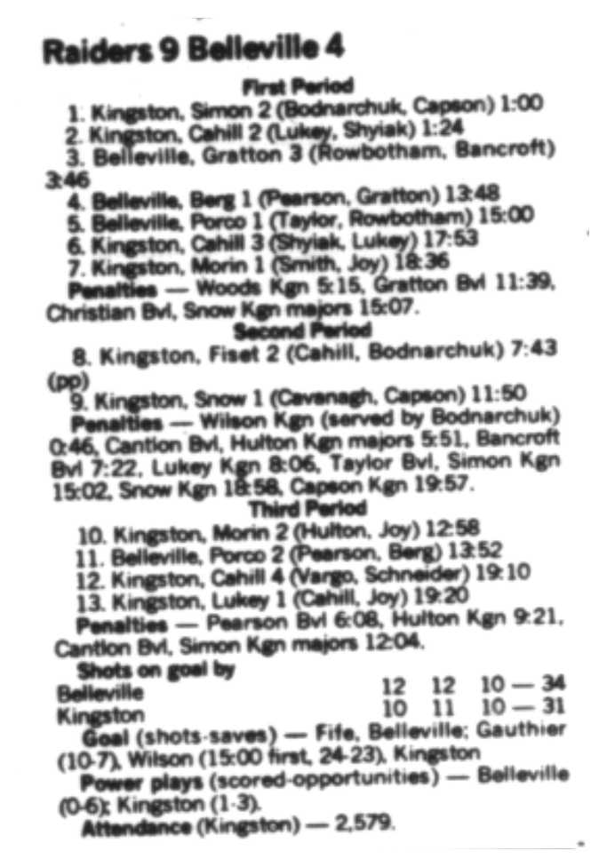 December 10 1988- Kingston @ Belleville (2-1 Kingston)