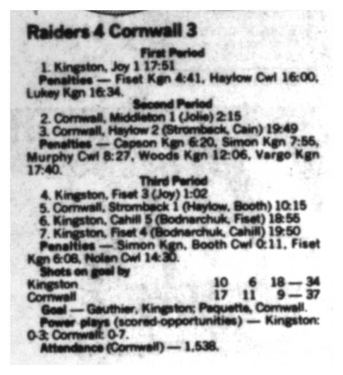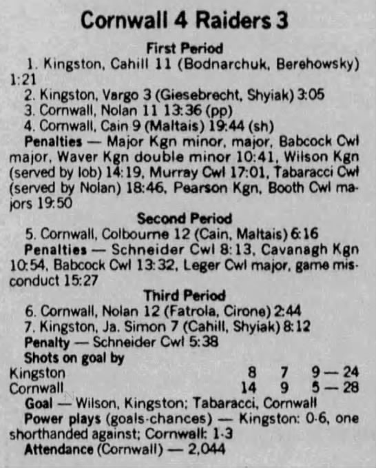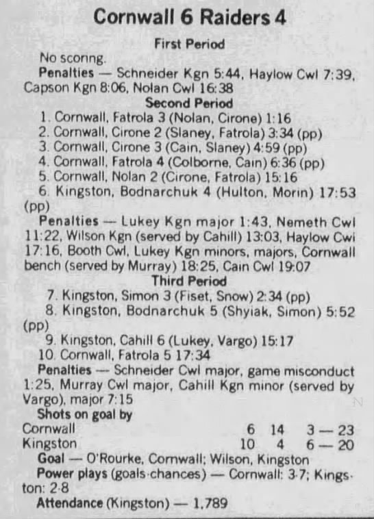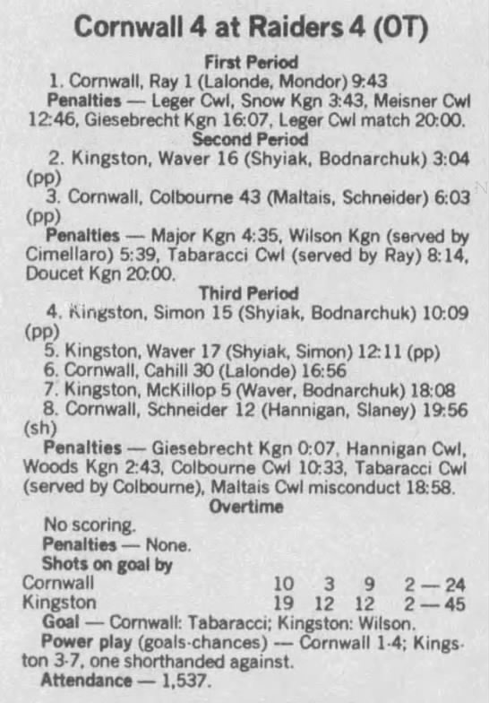 February 10 1989- Cornwall @ Kingston