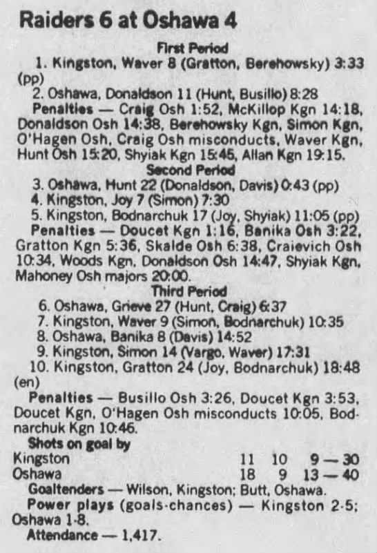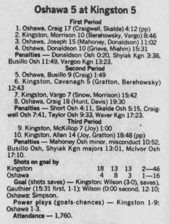 January 10 1989- Kingston @ Oshawa