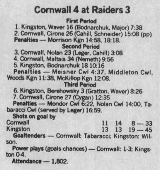 October 7 1988- Cornwall @ Kingston