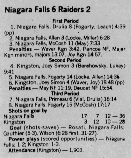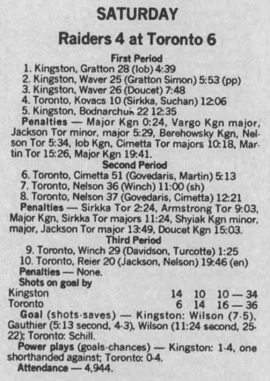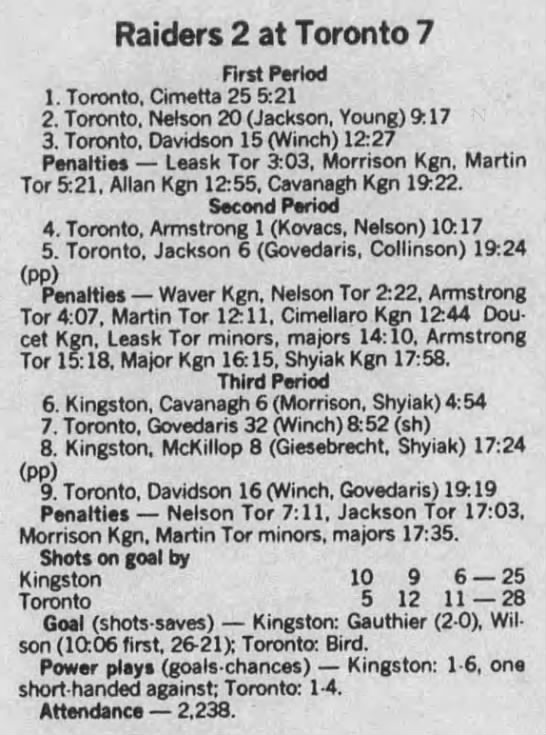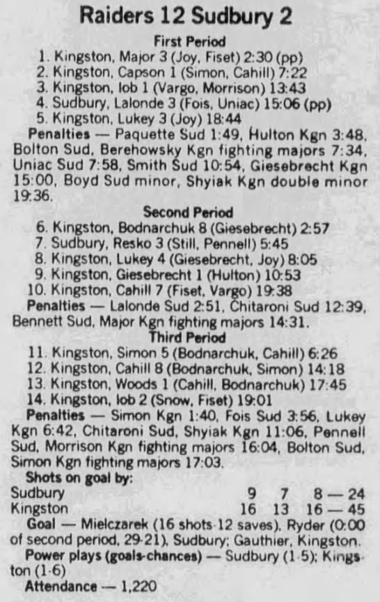 Here are the boxscores from the 1988-89 Kingston Raiders season. Most boxscores from this season are here (65/66 boxscores). If you have any of the games that are missing, please send them my way.