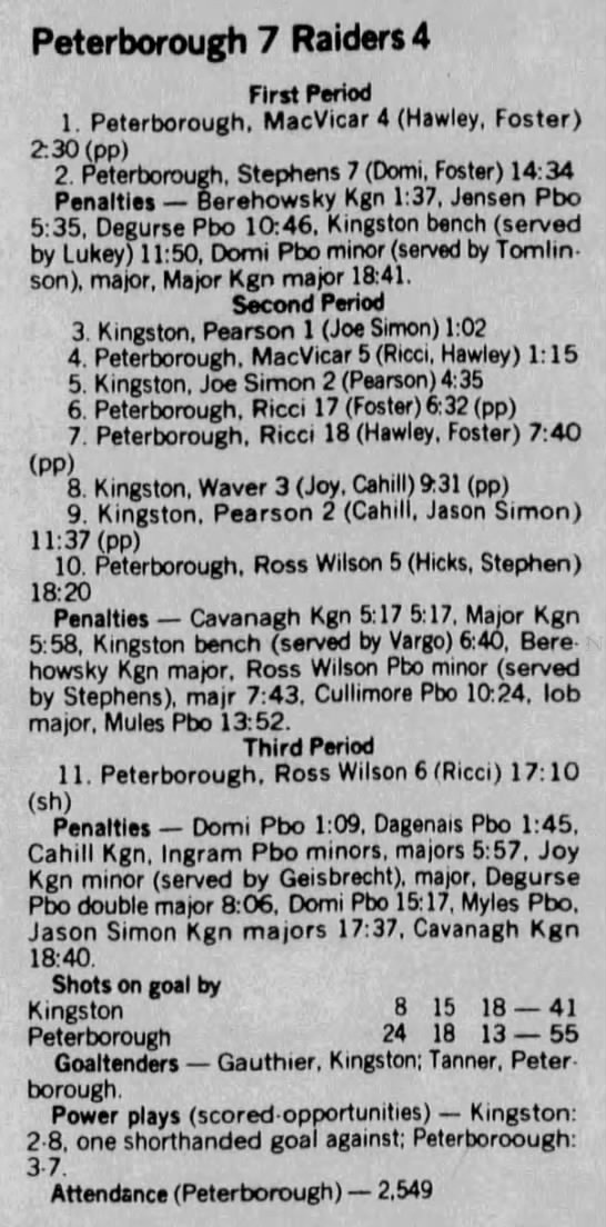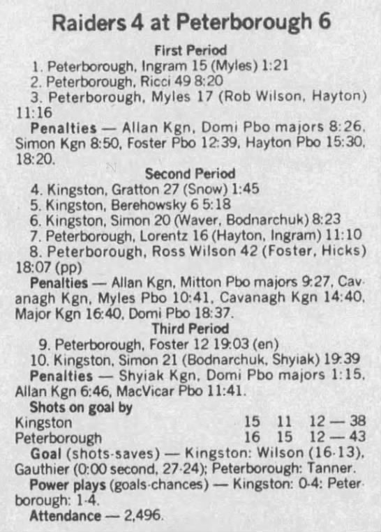 January 15 1989- Peterborough @ Kingston