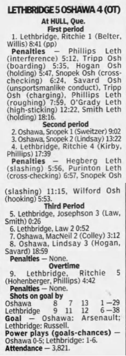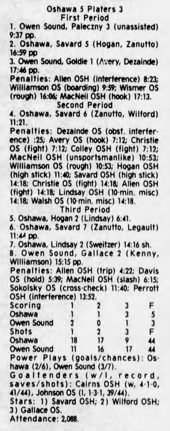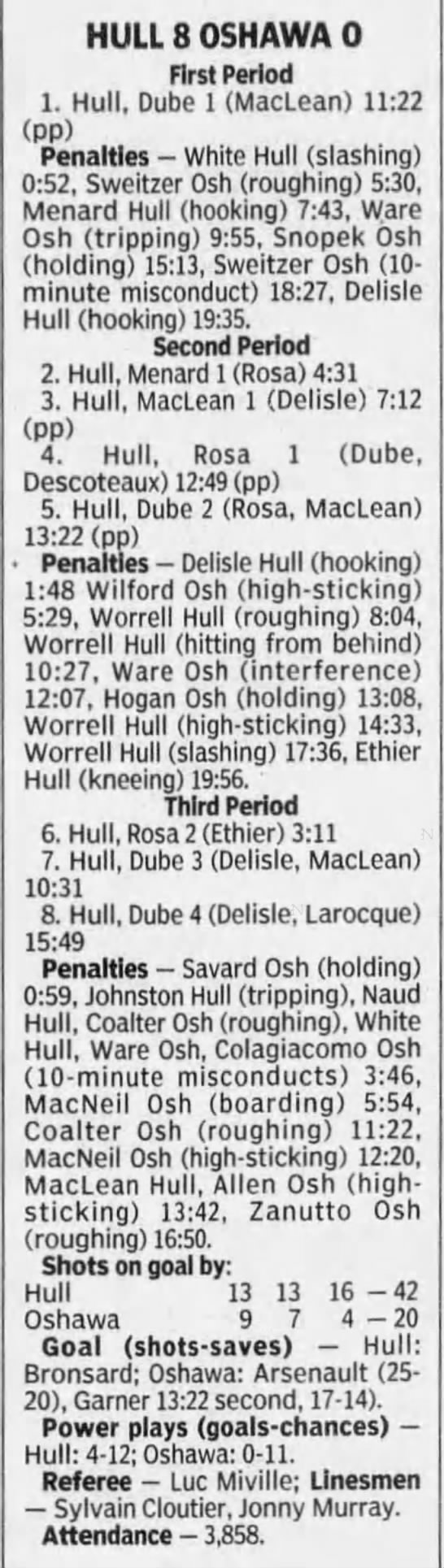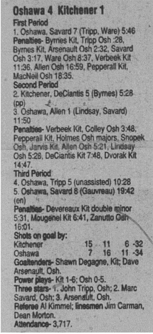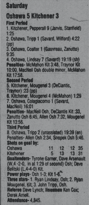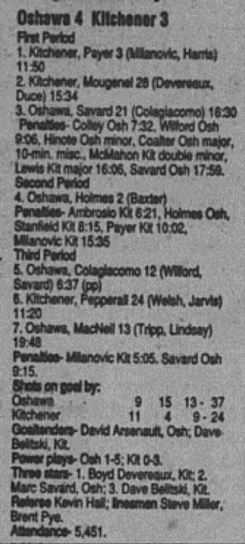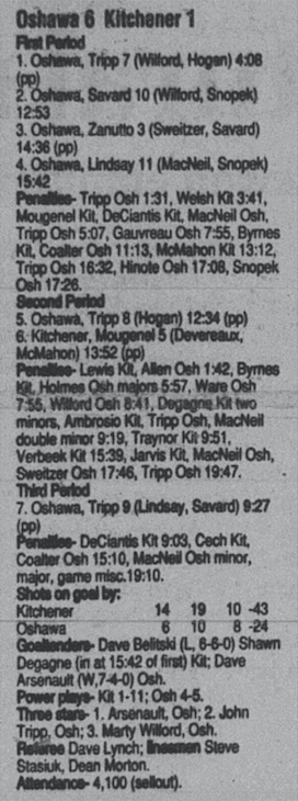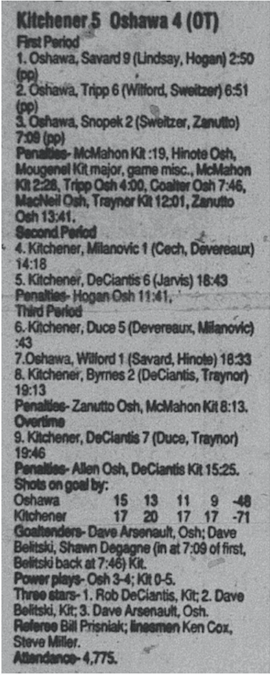 October 27 1996- Kingston @ Oshawa (6-4 Oshawa)