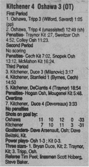 November 29 1996- North Bay @ Oshawa (4-3 Oshawa)