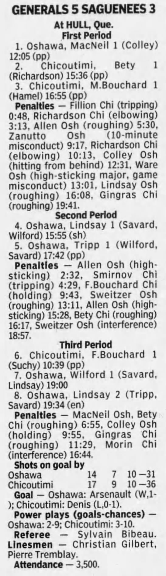 October 4 1996- Belleville @ Oshawa (5-3 Oshawa)