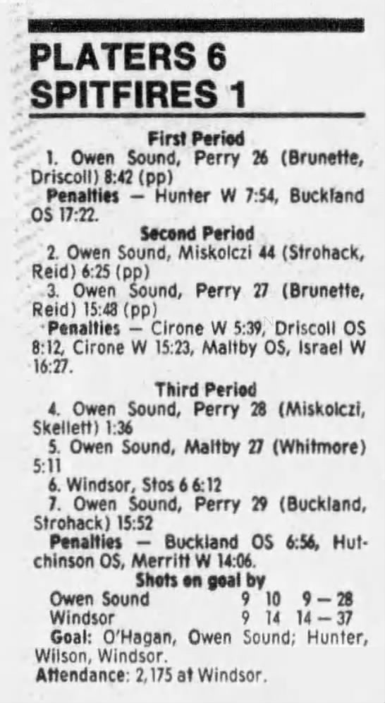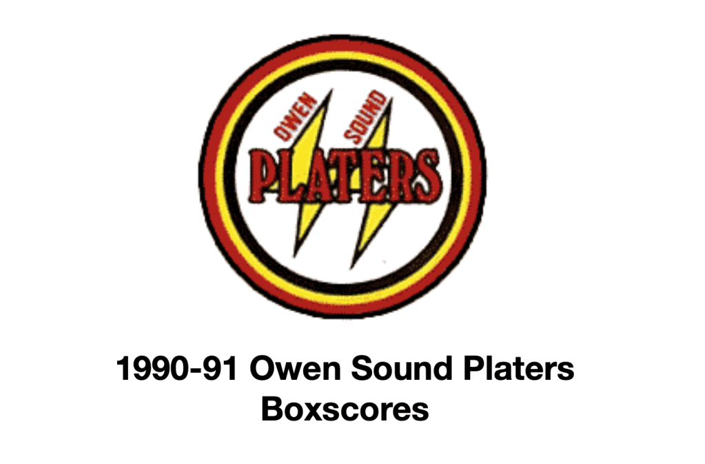 Here are the boxscores from the 1990-91 Owen Sound Platers season. Every boxscore from this season can be found here (66/66 boxscores). If you have any games from other seasons that are missing, please send them my way.