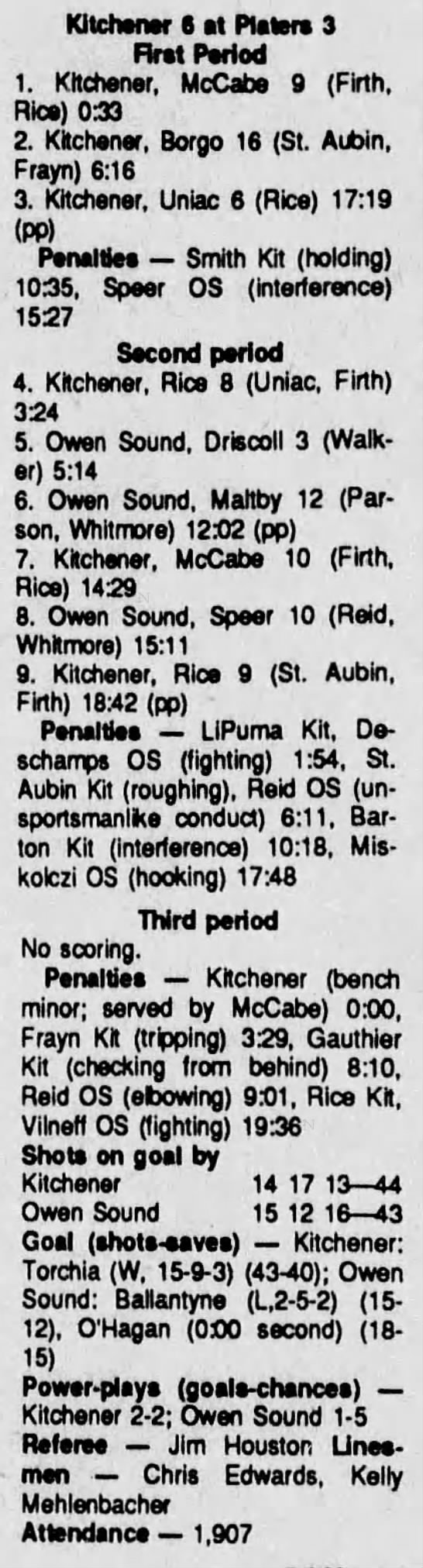 December 14 1990- Owen Sound @ Kitchener