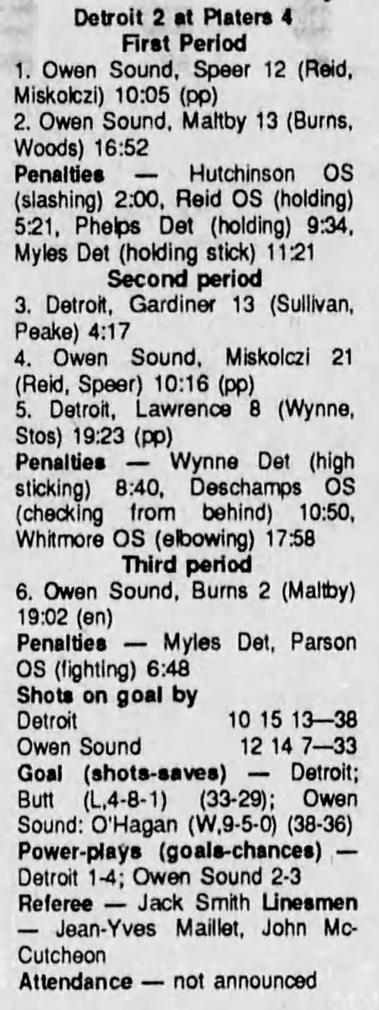 December 15 1990- Detroit @ Owen Sound