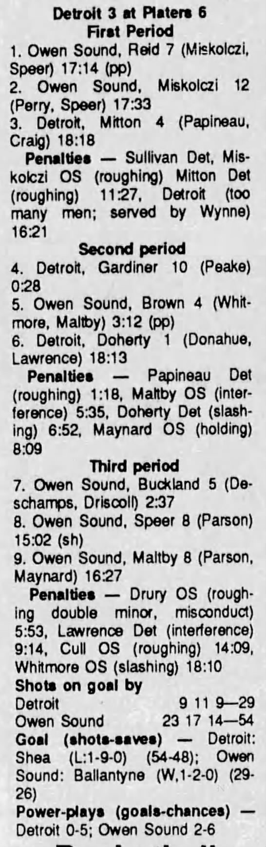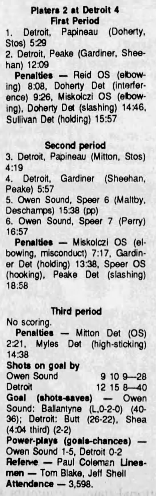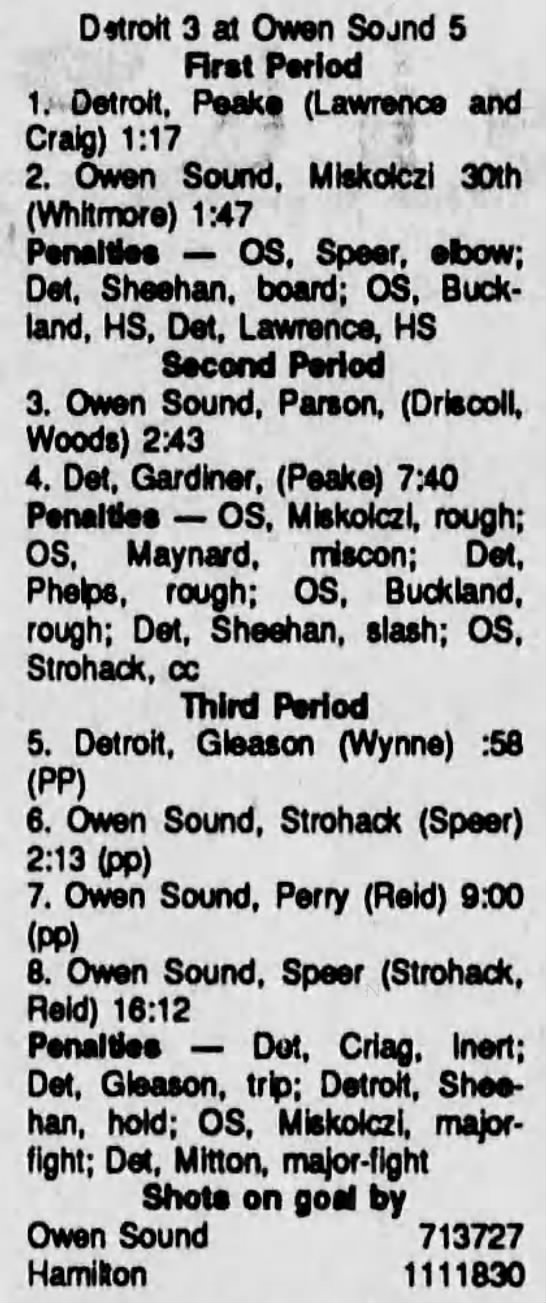October 4 1990- Owen Sound @ Detroit