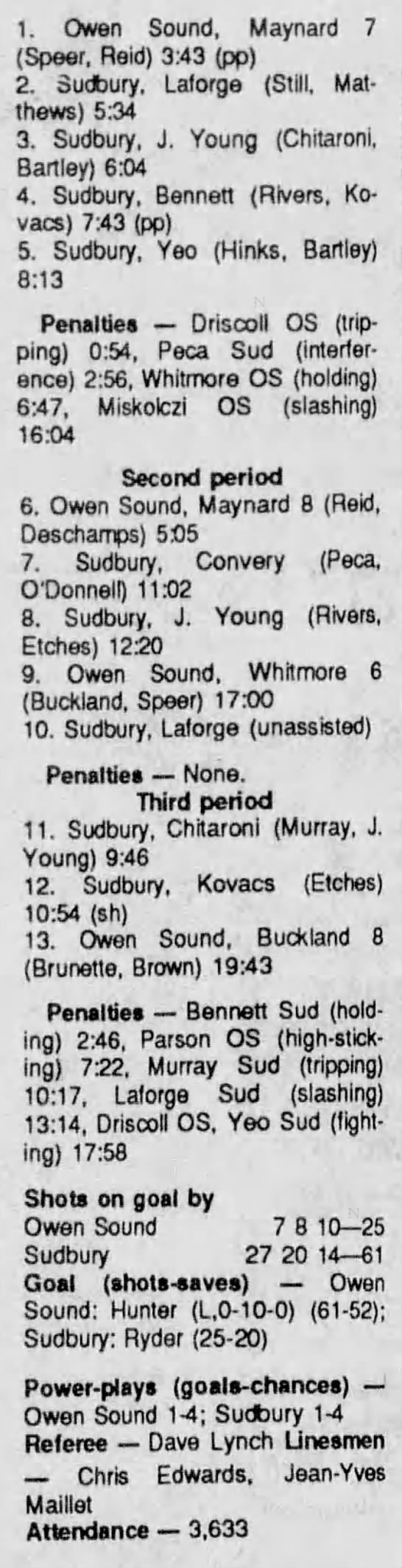 January 26 1991- Sudbury @ Owen Sound
