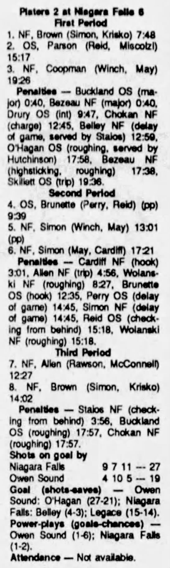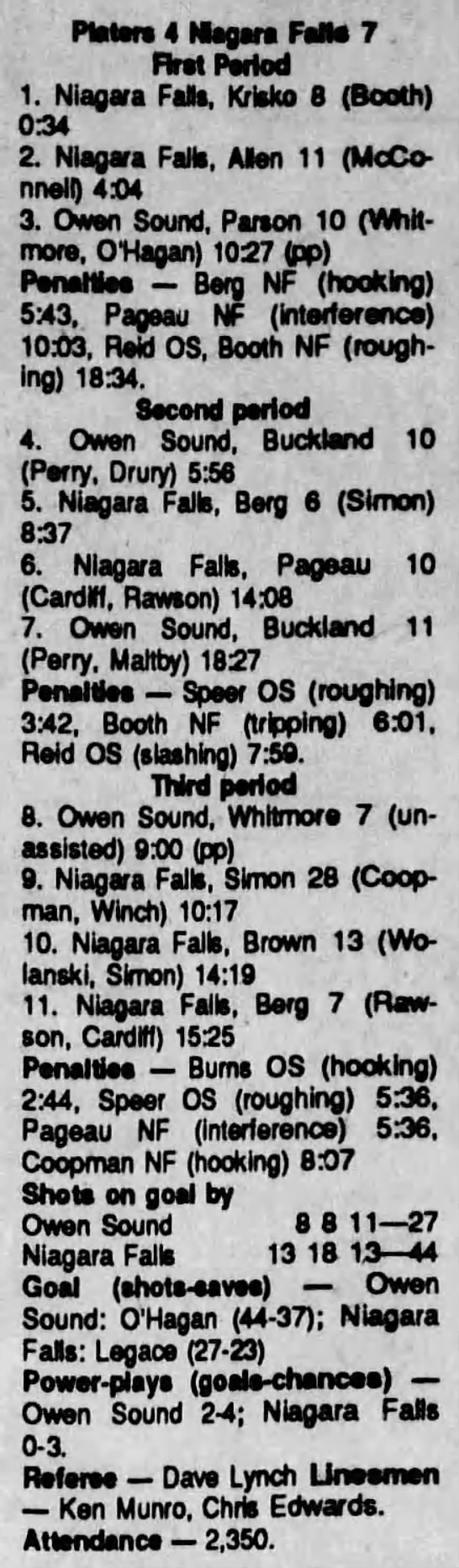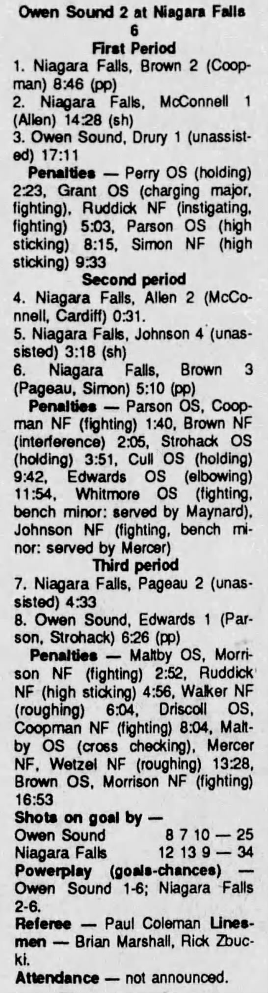 September 27 1990- Owen Sound @ Niagara Falls