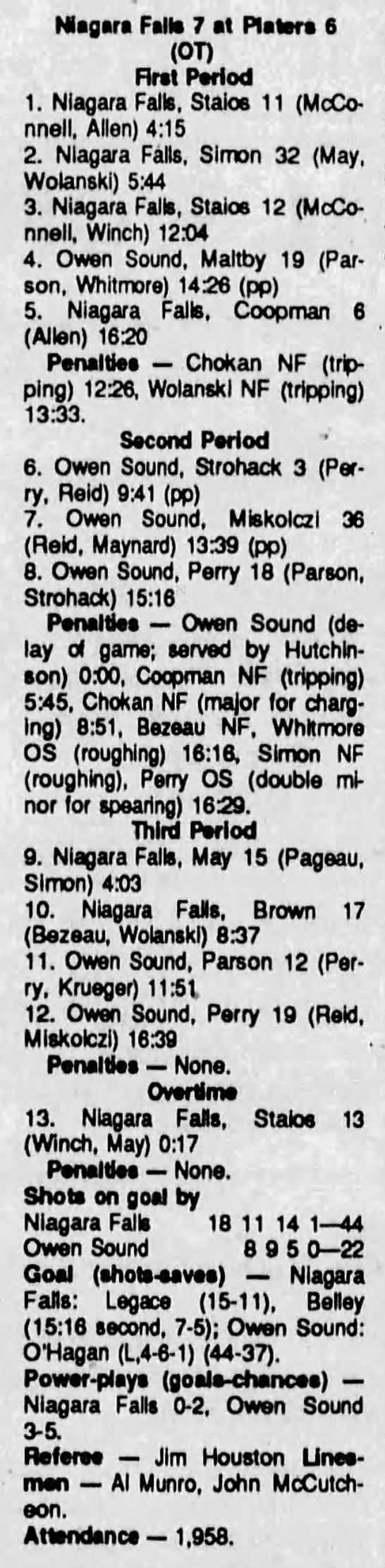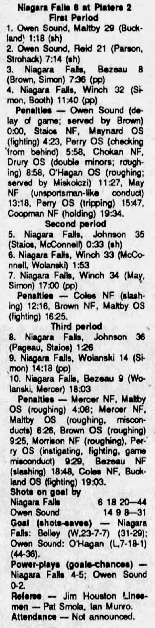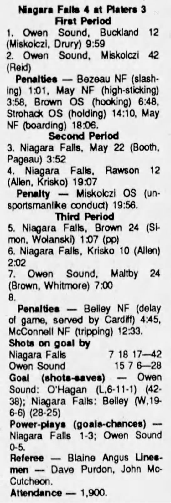 September 27 1990- Owen Sound @ Niagara Falls
