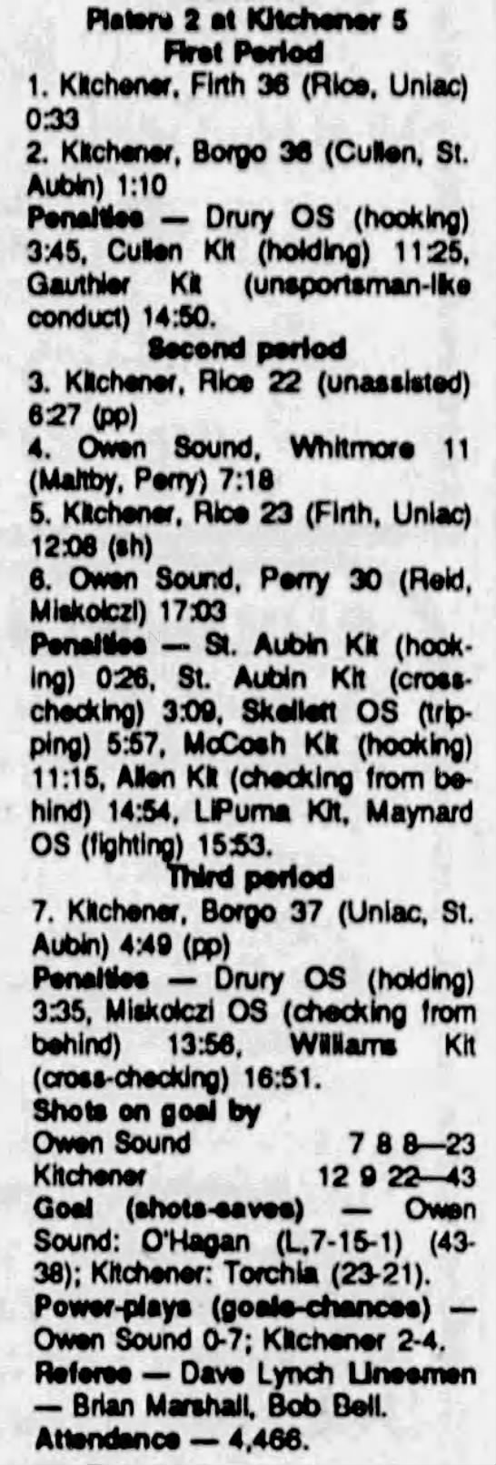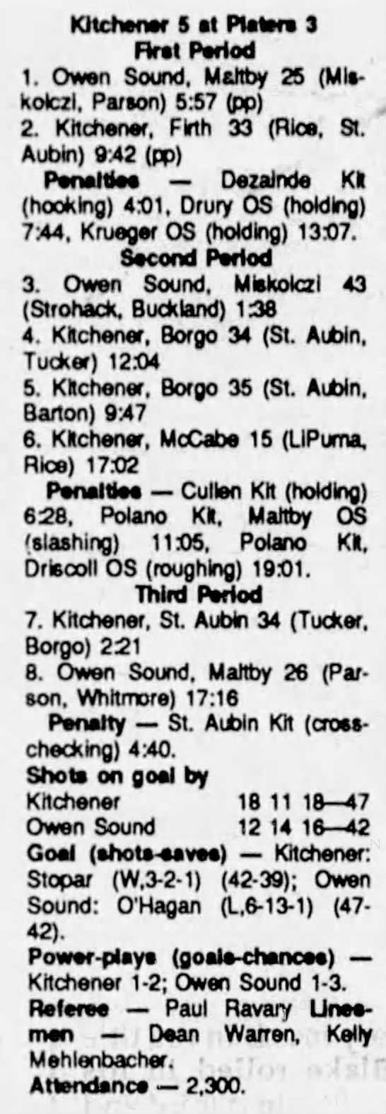 March 1 1991- Owen Sound @ Kitchener