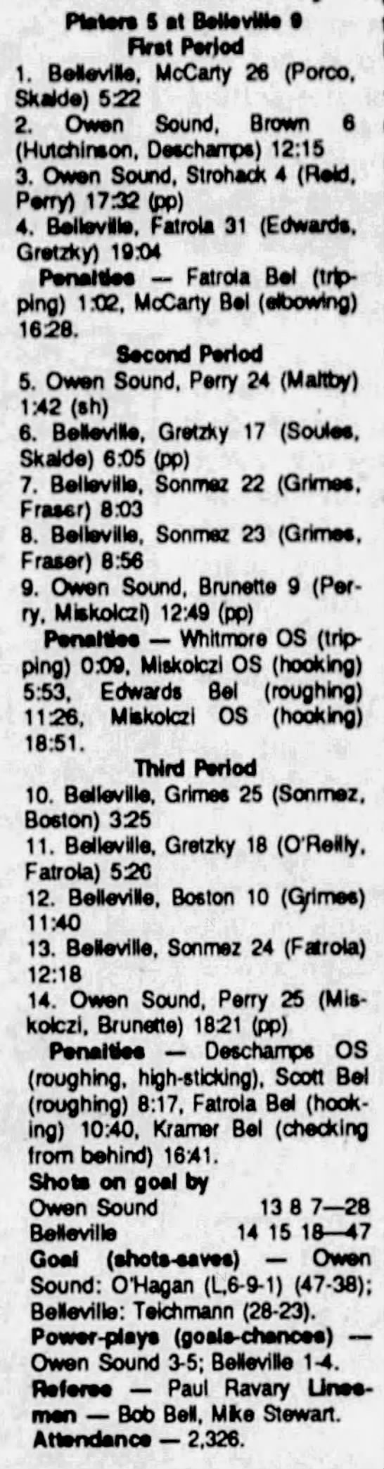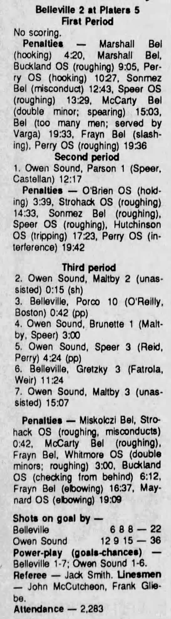 October 20 1990- Belleville @ Owen Sound