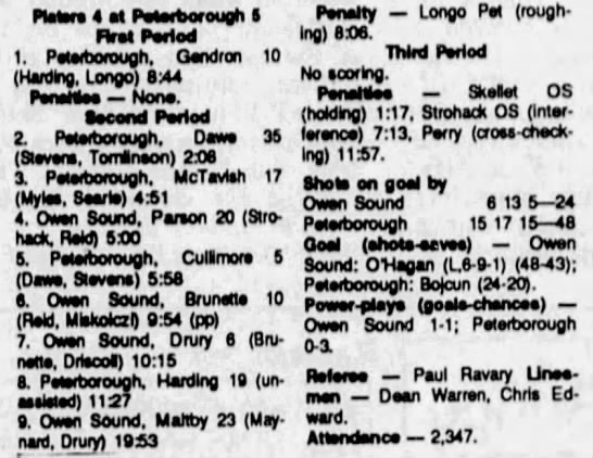 September 29 1990- Peterborough @ Owen Sound