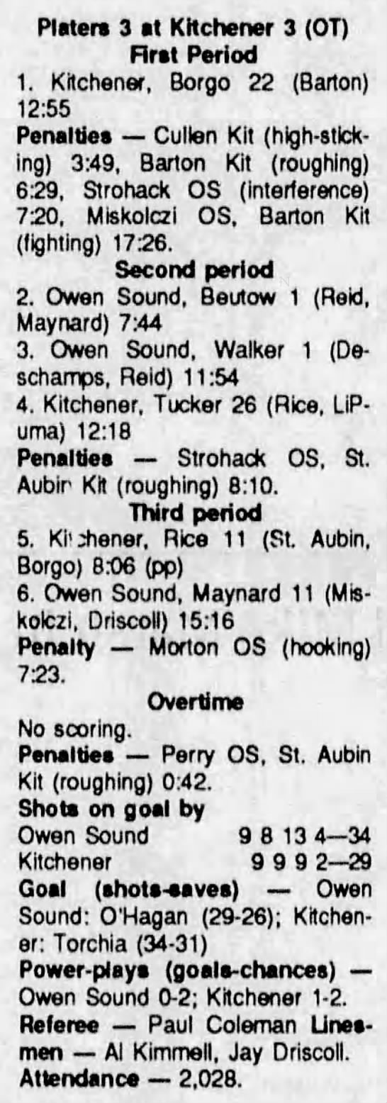 November 7 1990- Kitchener @ Owen Sound