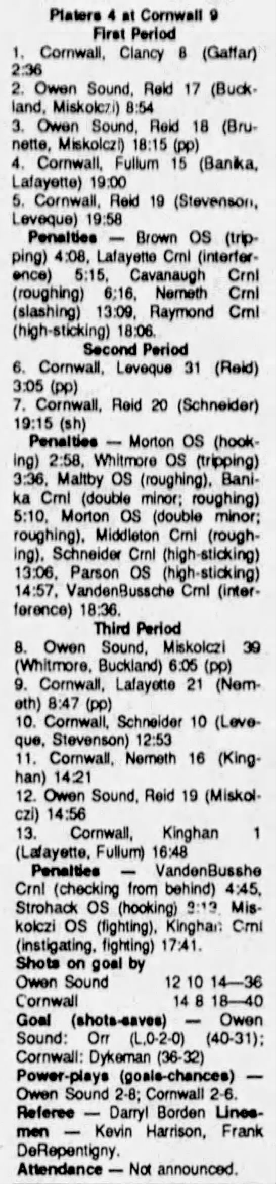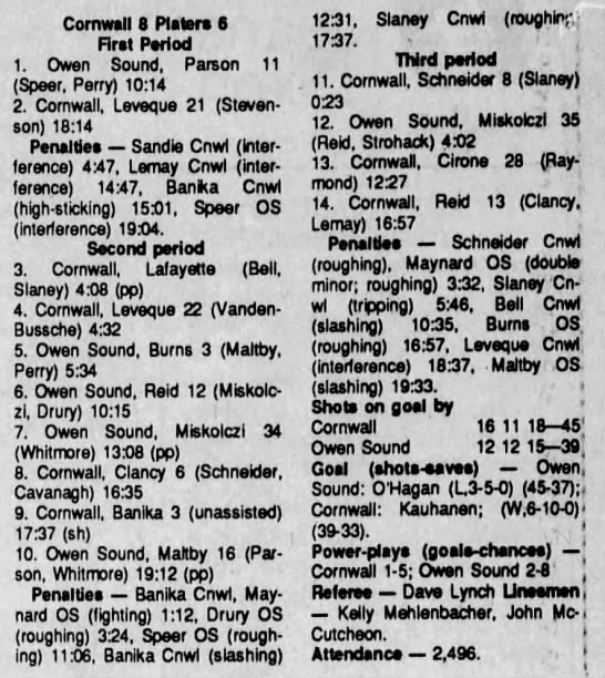 January 5 1991- Cornwall @ Owen Sound