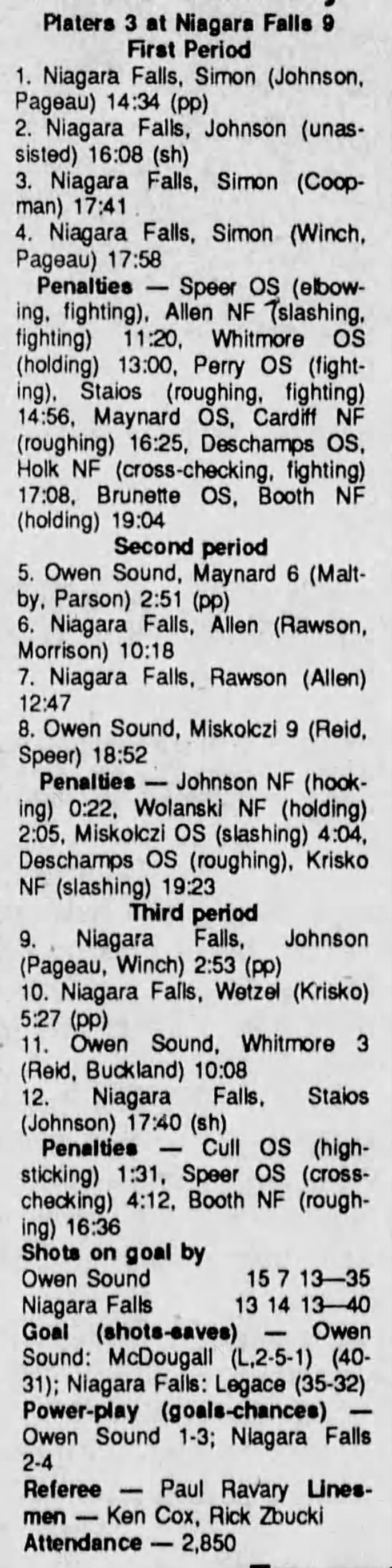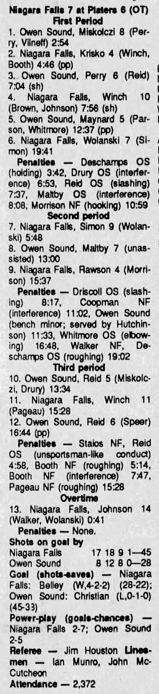February 14 1991- Owen Sound @ Niagara Falls