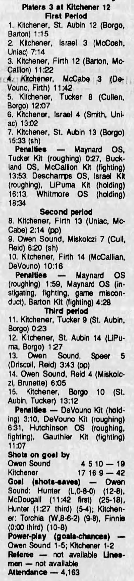 December 12 1990- Kitchener @ Owen Sound