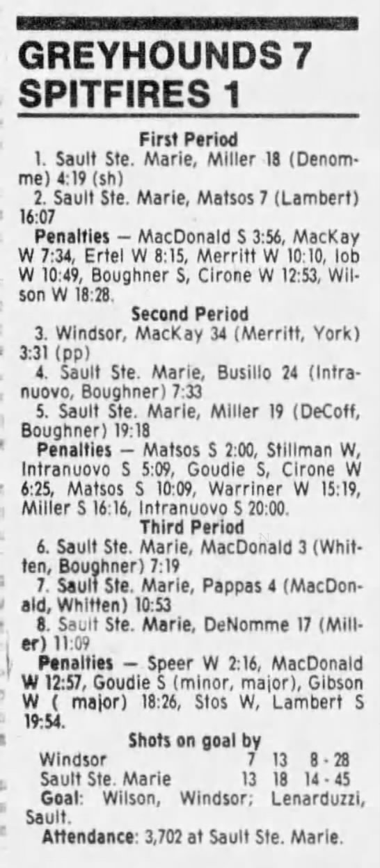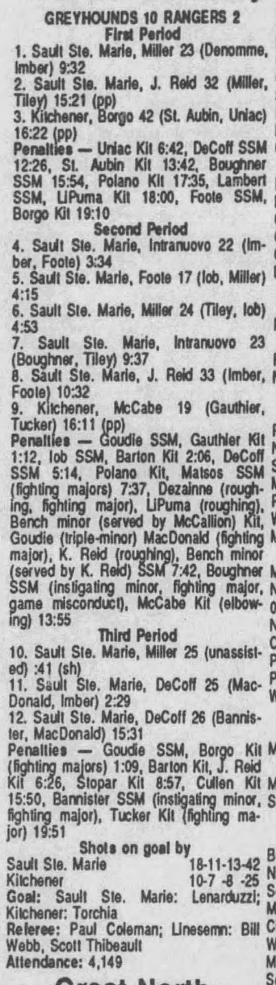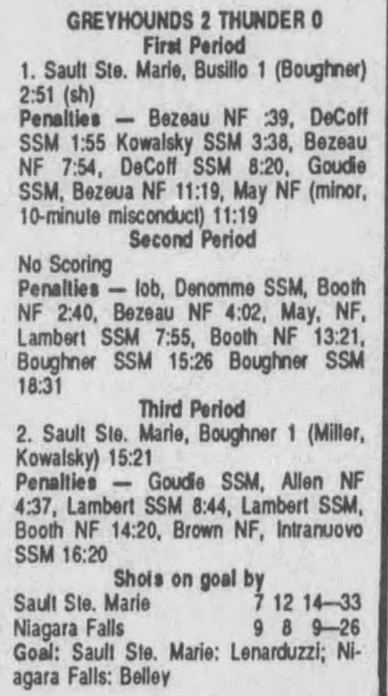 Here are the boxscores from the 1990-91 Soo Greyhounds season. Most boxscores from this season are here (61/83 boxscores). If you have any of the games that are missing, please send them my way.