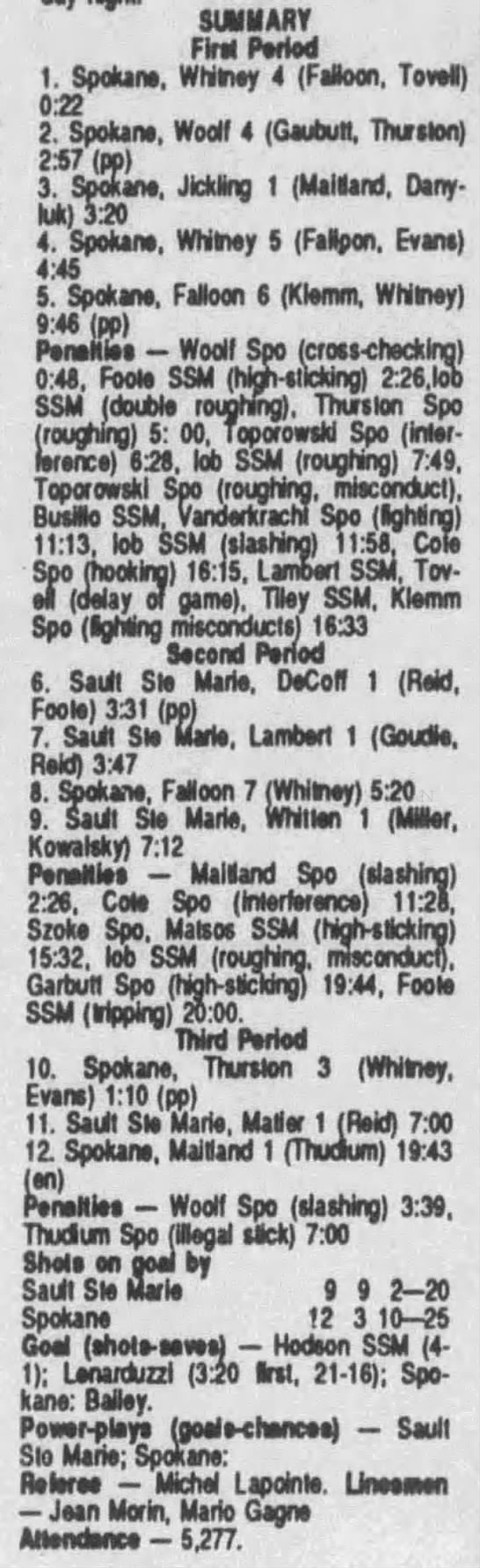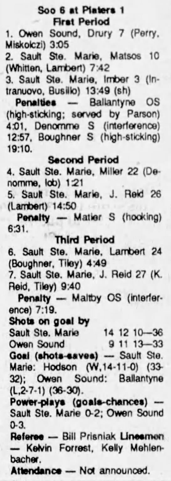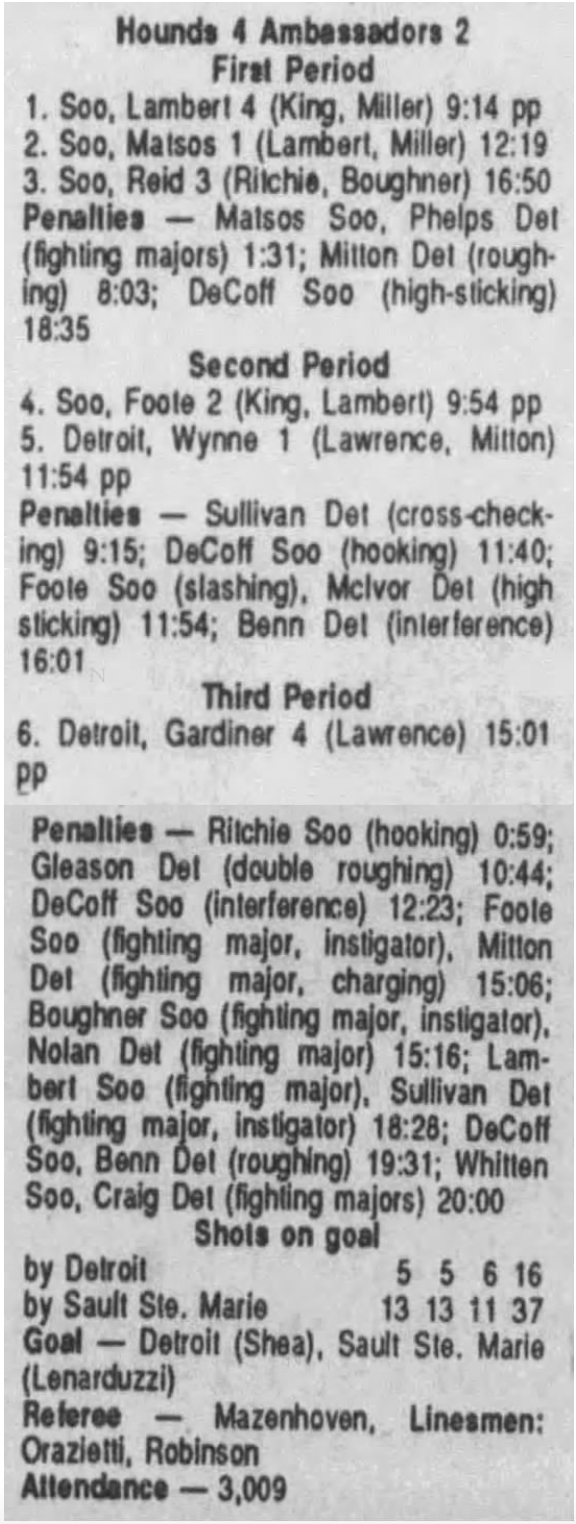 September 30 1990- Soo @ Detroit (6-3 Soo)