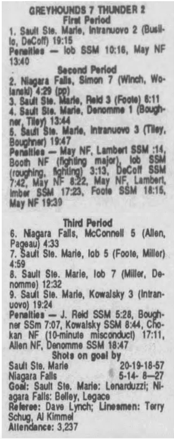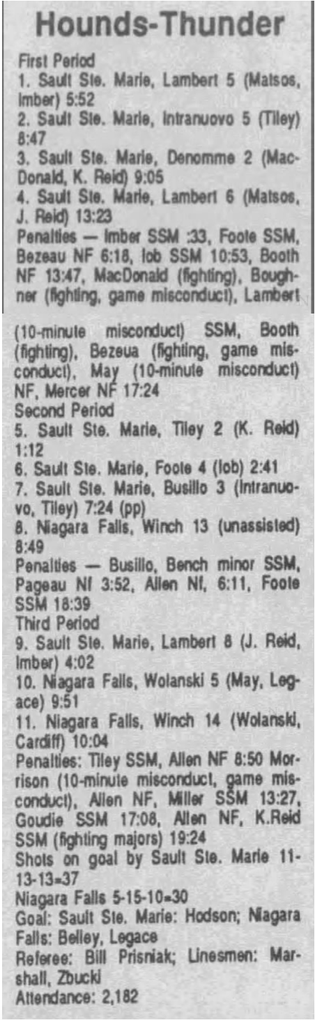 February 9 1991- Soo @ Niagara Falls (7-2 Soo)