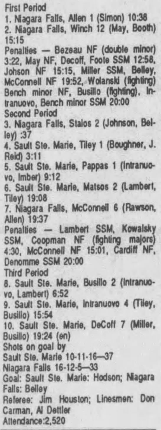 February 21 1991- Soo @ Niagara Falls (6-4 Soo)