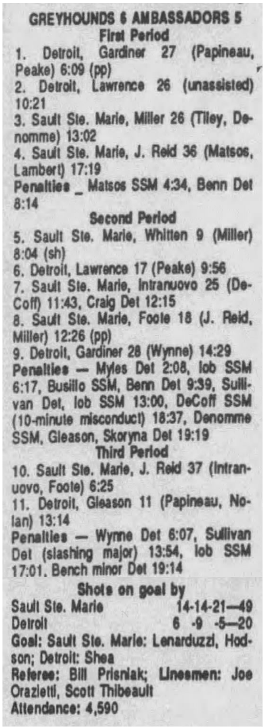 October 28 1990- Soo @ Detroit (5-1 Soo)