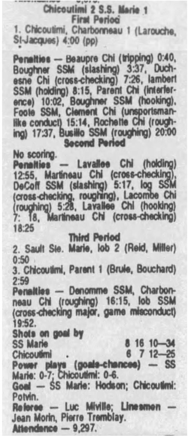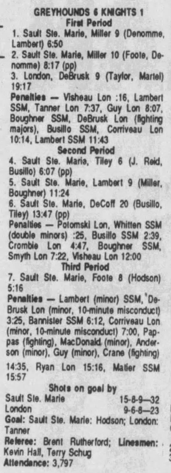 September 27 1990- Soo @ Hamilton (6-1 Soo)