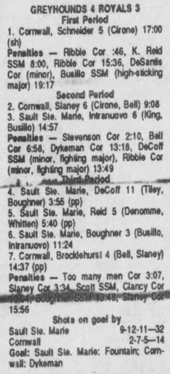 November 22 1990- Soo @ Cornwall (6-4 Cornwall)