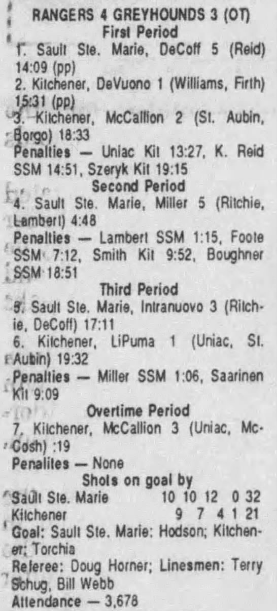 October 14 1990- Soo @ Kitchener (4-3 Soo)
