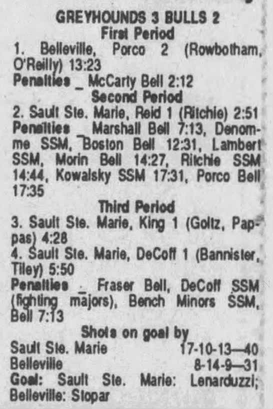 December 22 1990- Soo @ Belleville (4-3 Belleville)