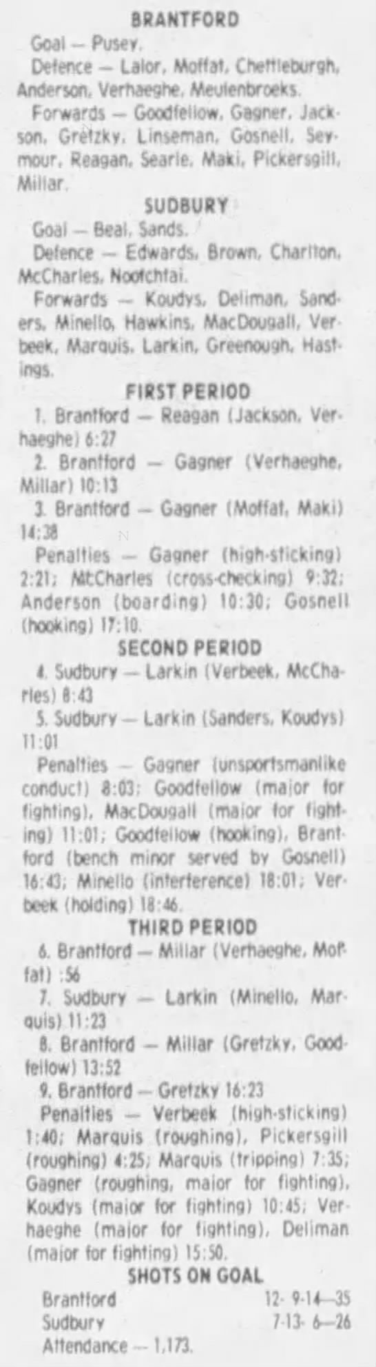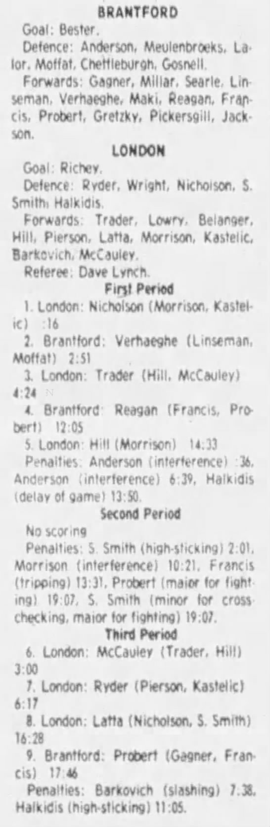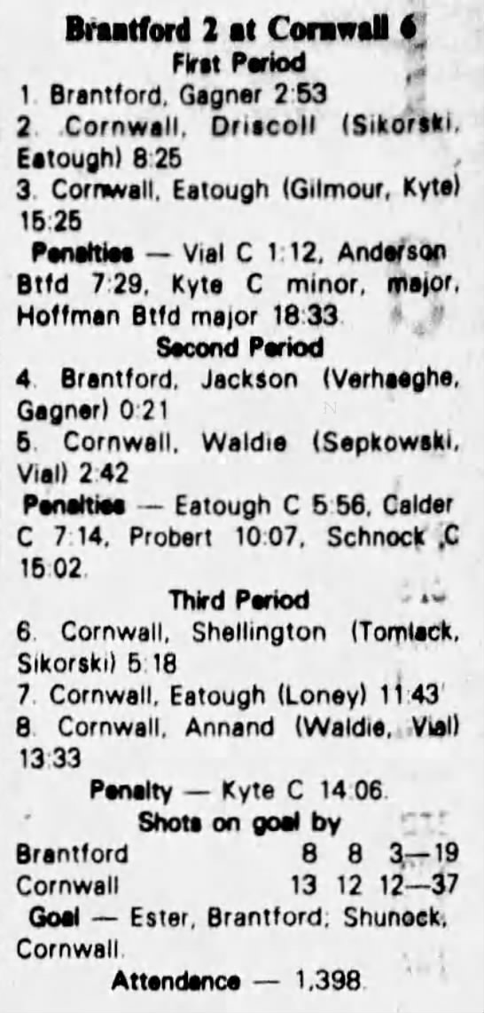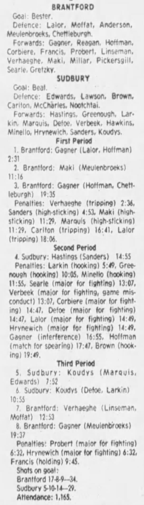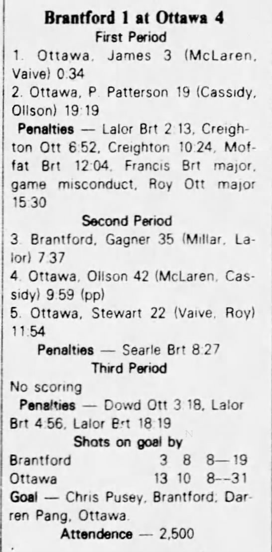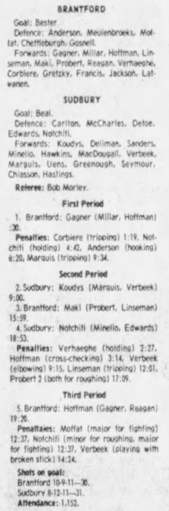 October 17 1982- Brantford @ Sudbury (7-5 Sudbury)