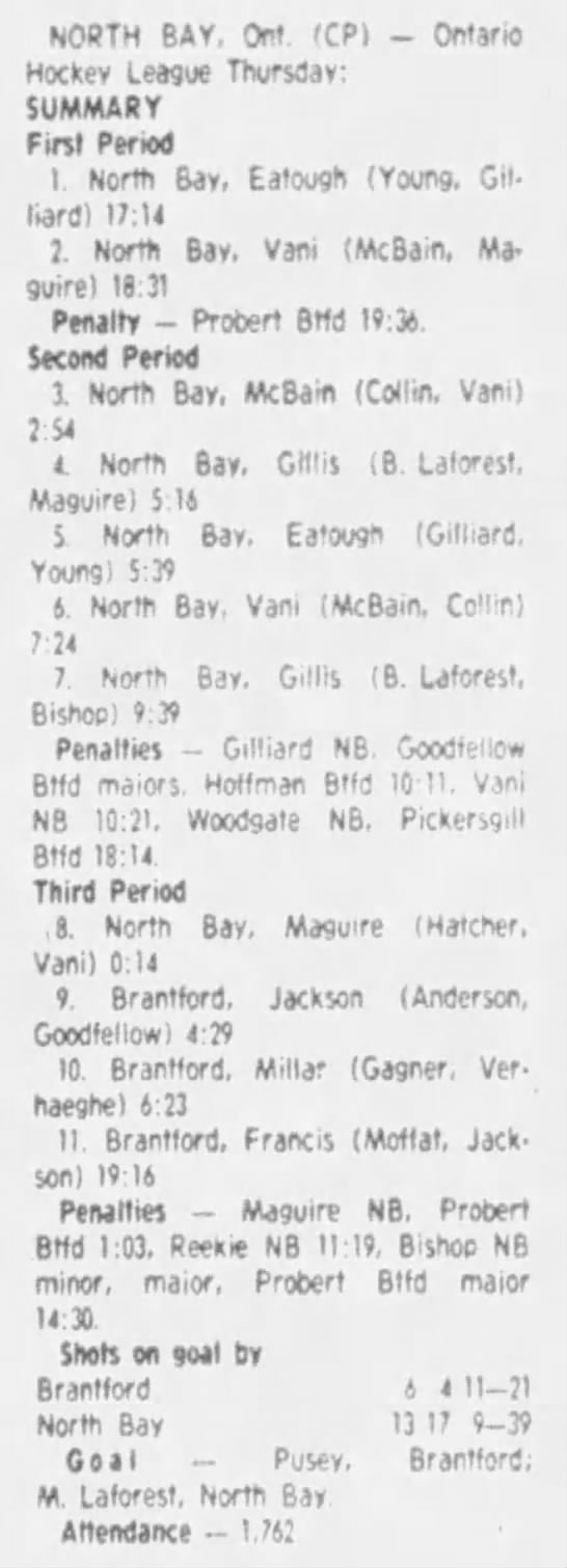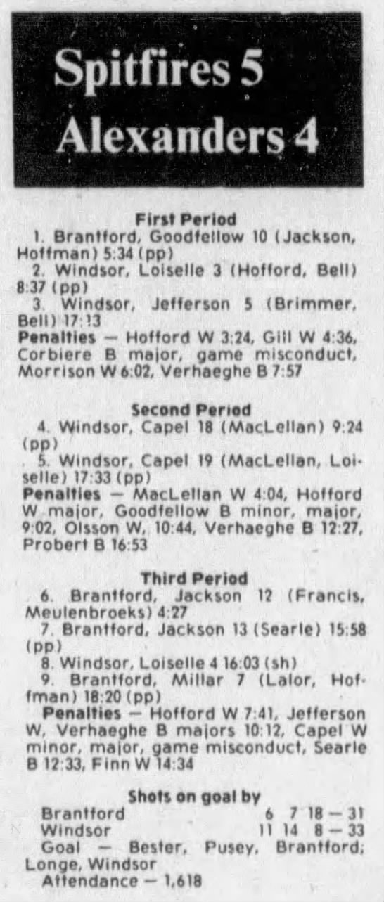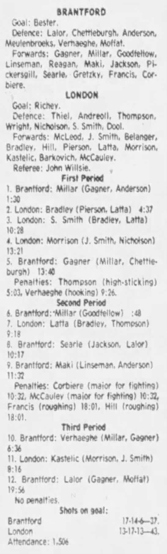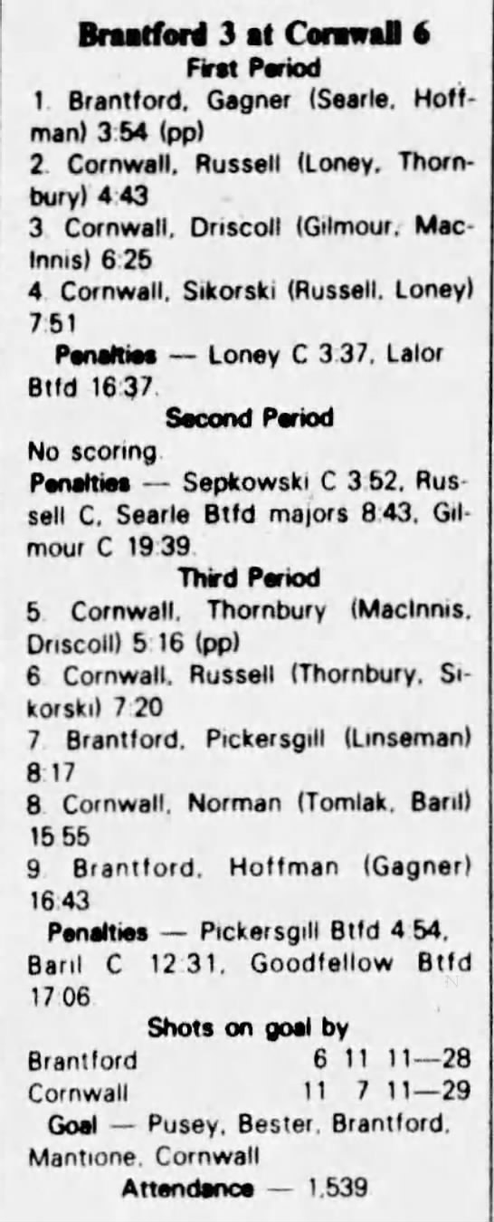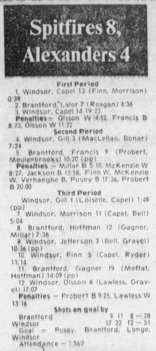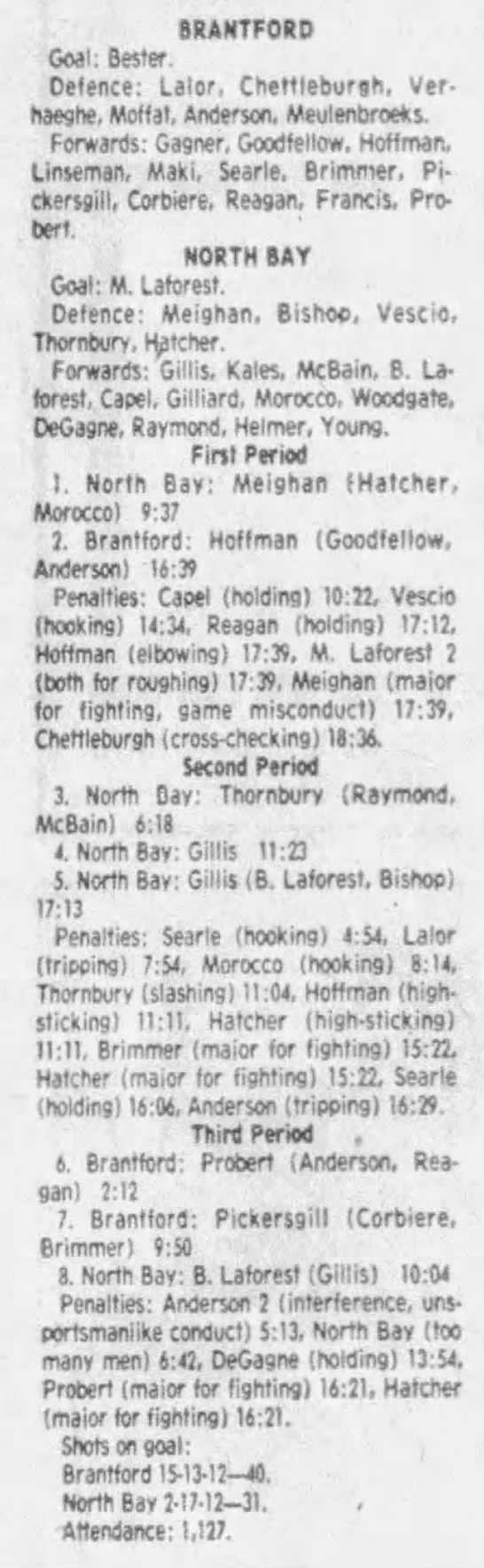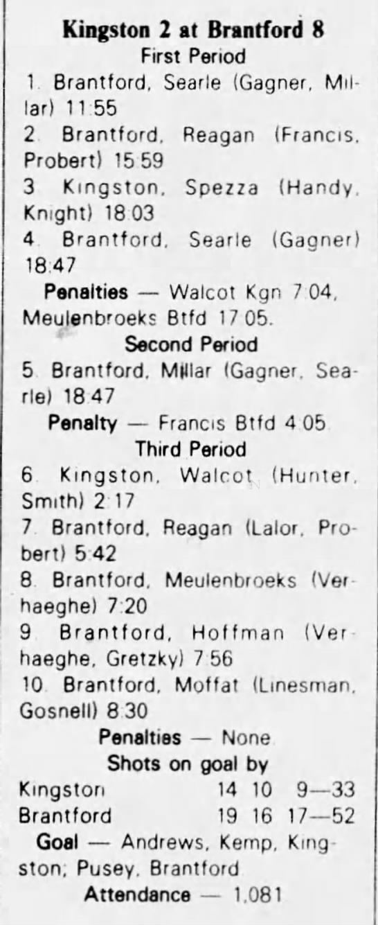 October 17 1982- Brantford @ Sudbury (7-5 Sudbury)