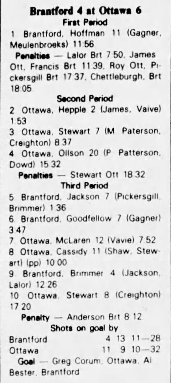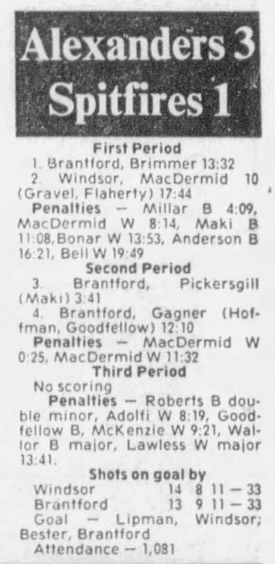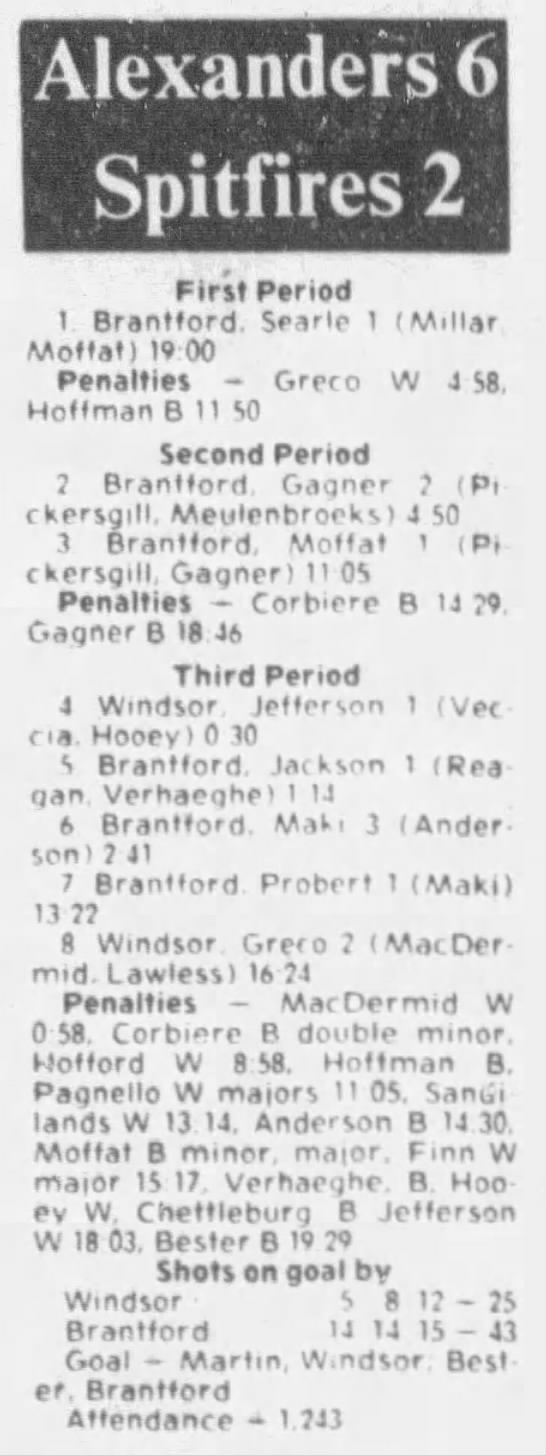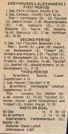 Here are the boxscores from the 1982-83 Brantford Alexanders season. Most boxscores from this season are here (71/78 boxscores). If you have any of the games that are missing, please send them my way.