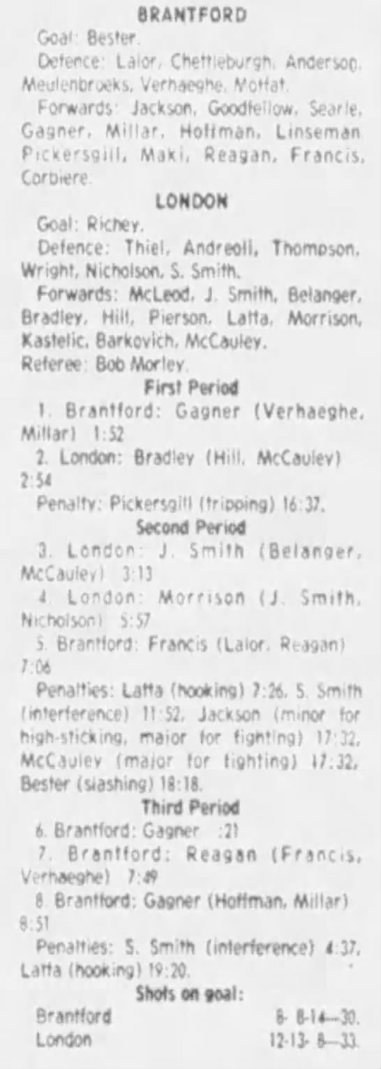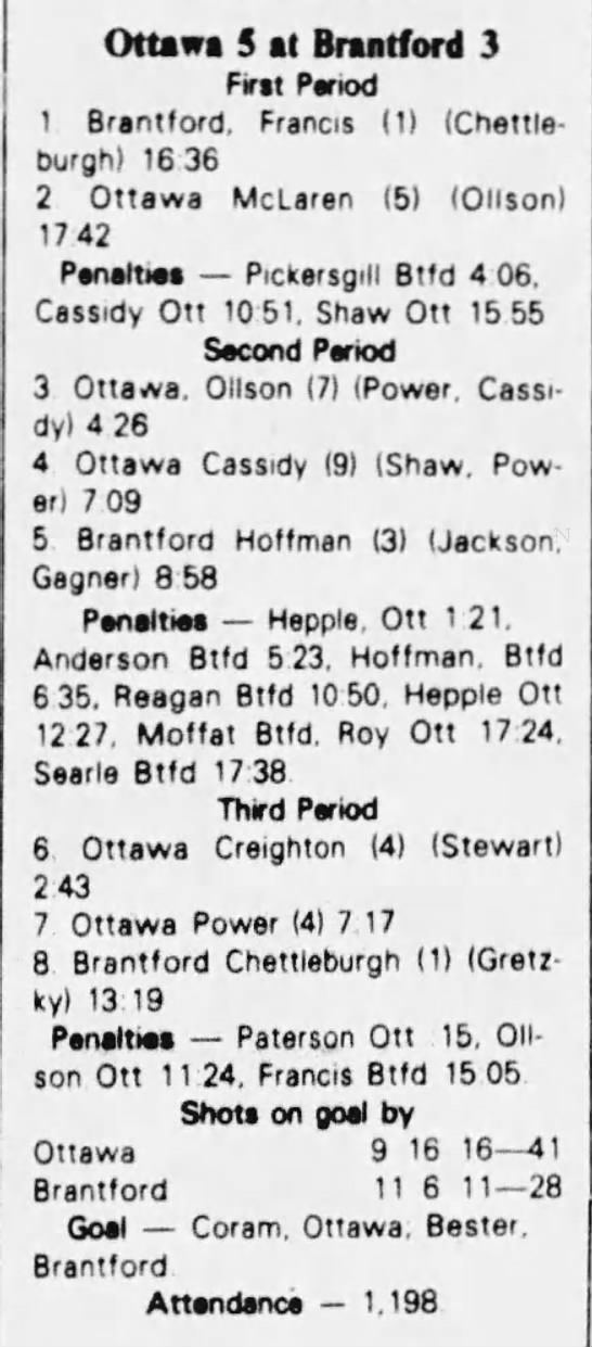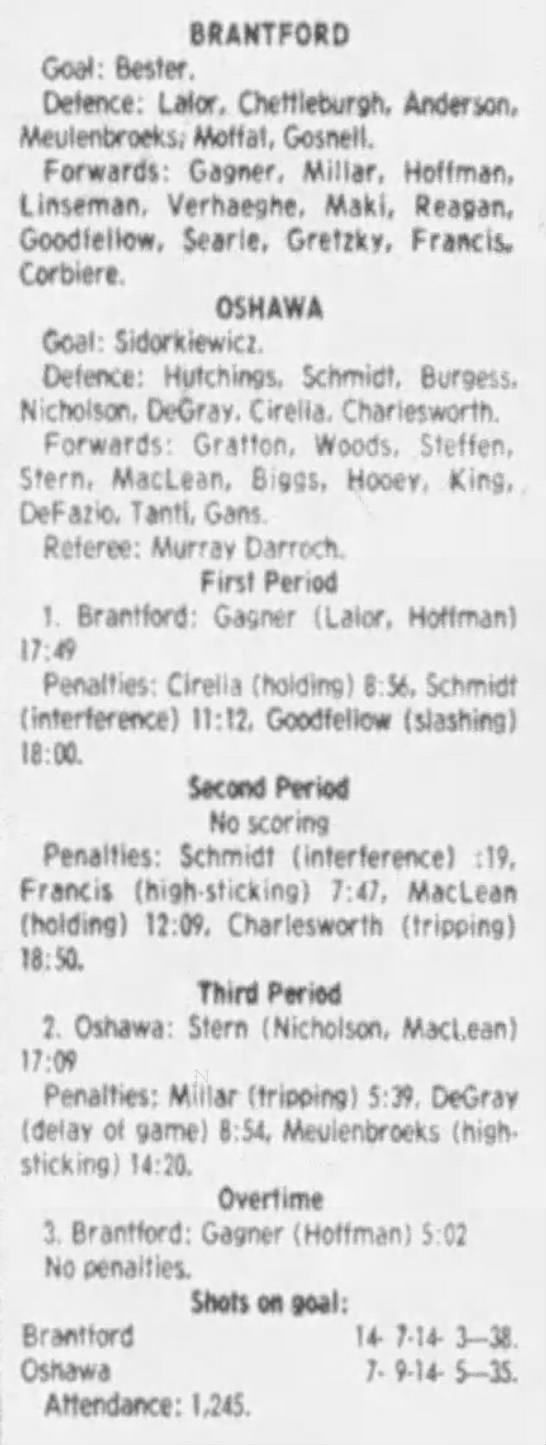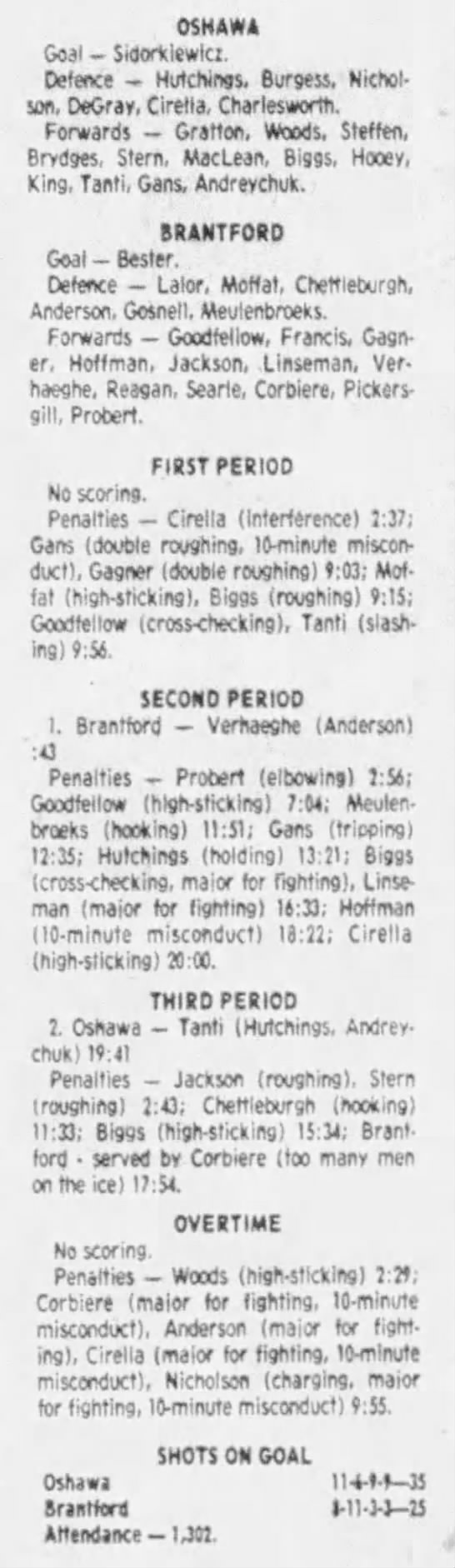 February 19 1983- Brantford @ Oshawa (6-5 Oshawa)