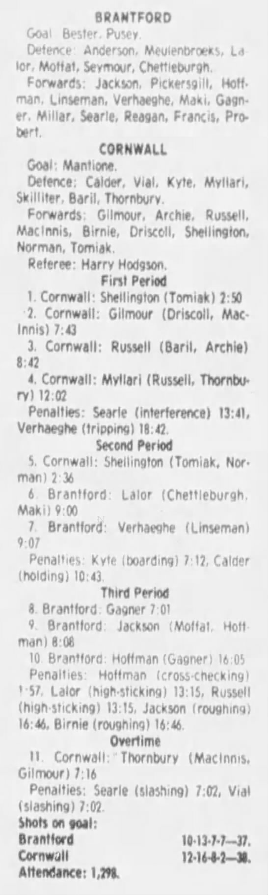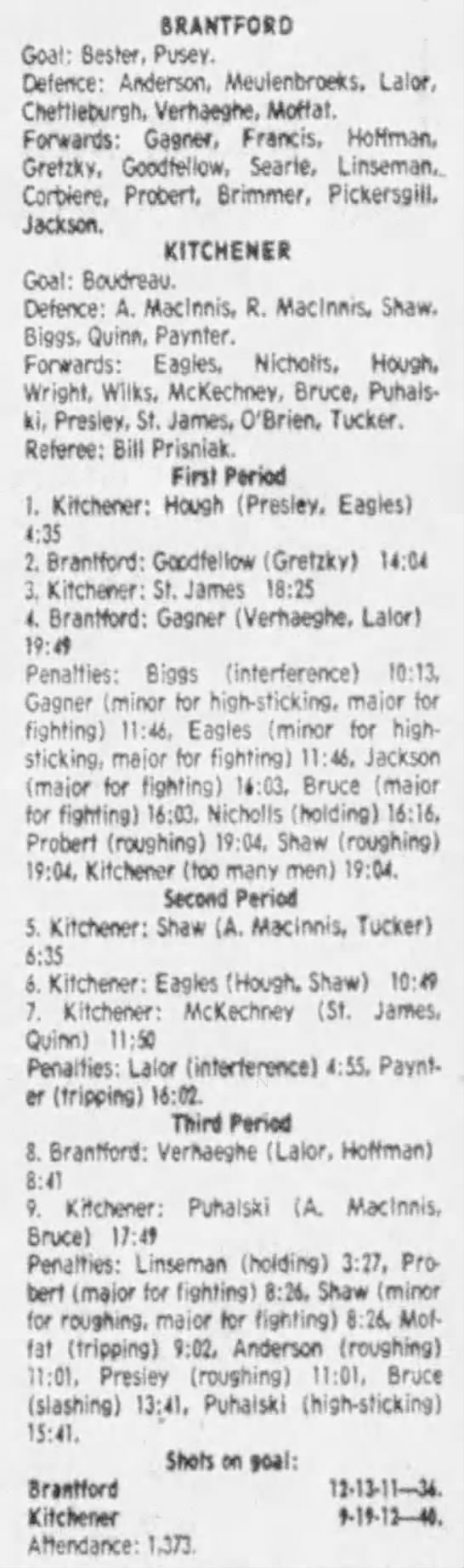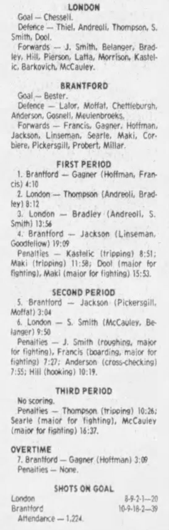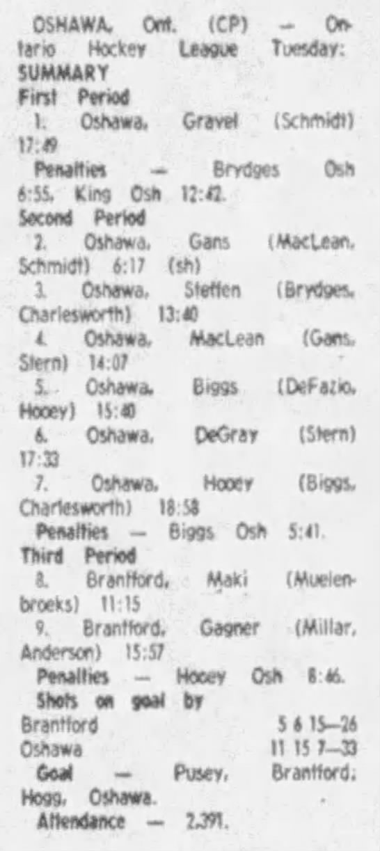 February 19 1983- Brantford @ Oshawa (6-5 Oshawa)