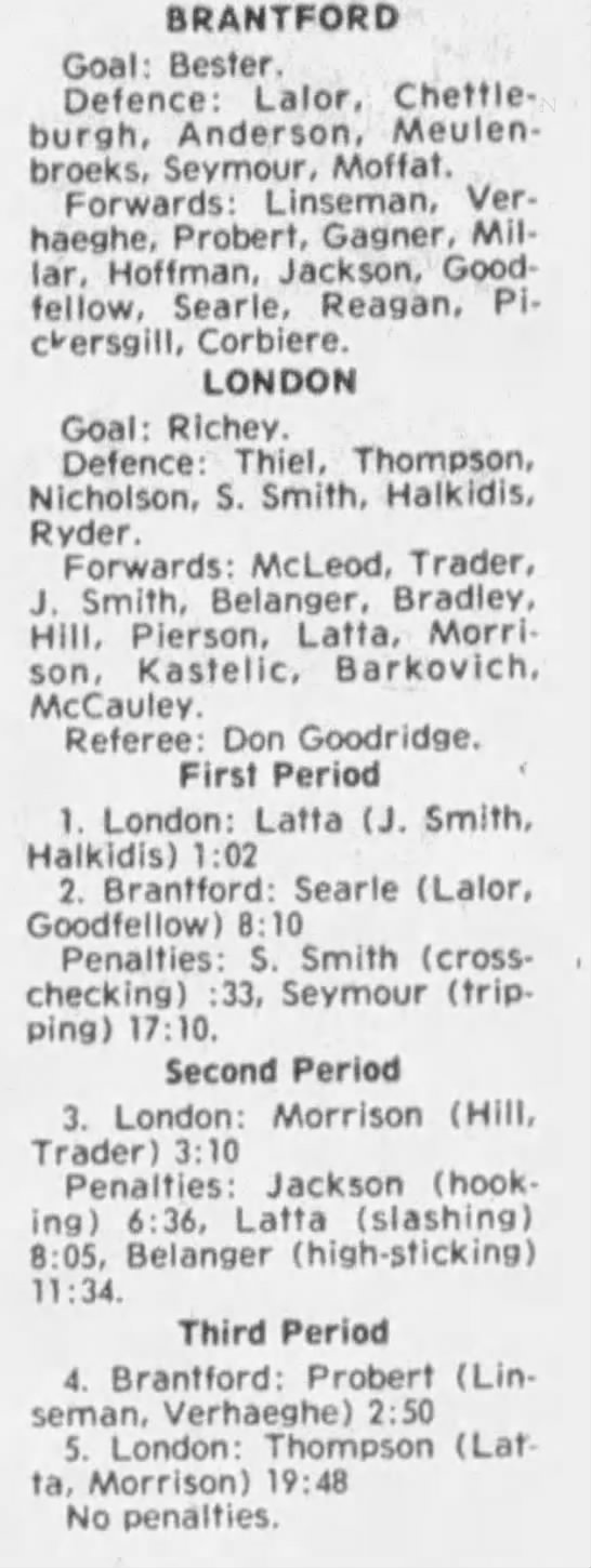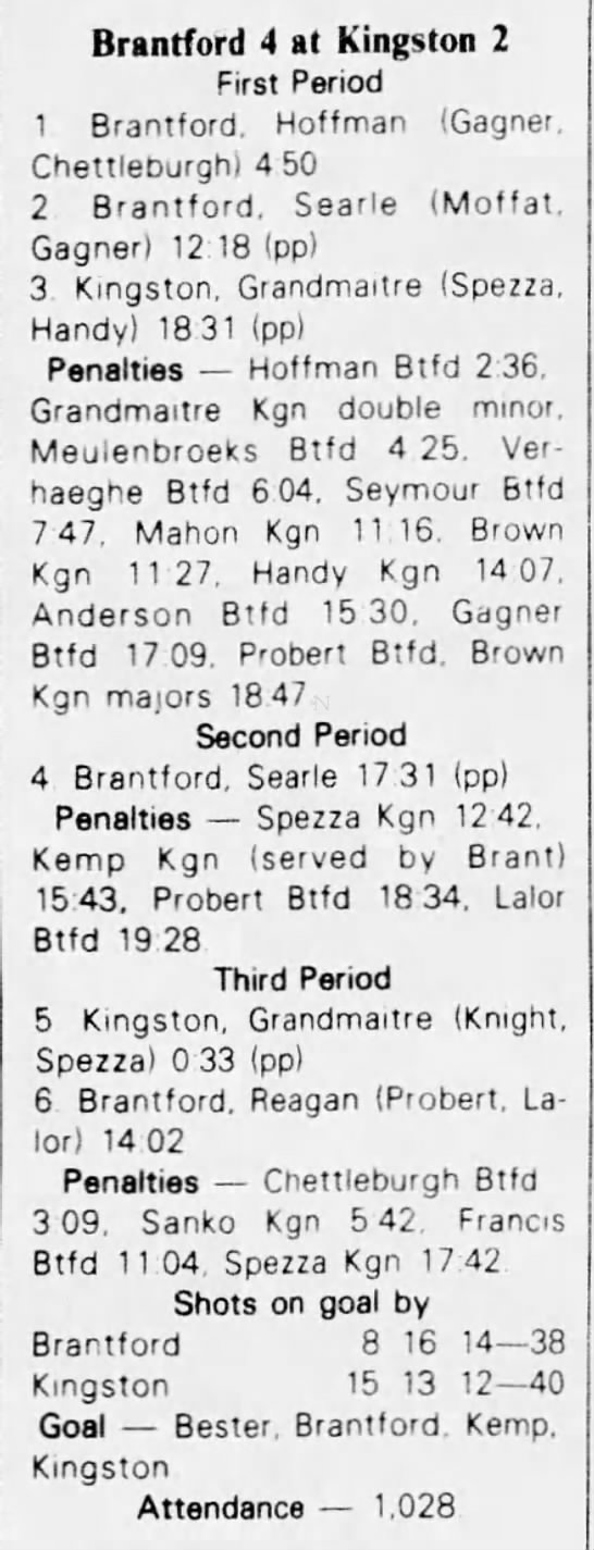 February 25 1983- Brantford @ Sudbury (5-1 Brantford)