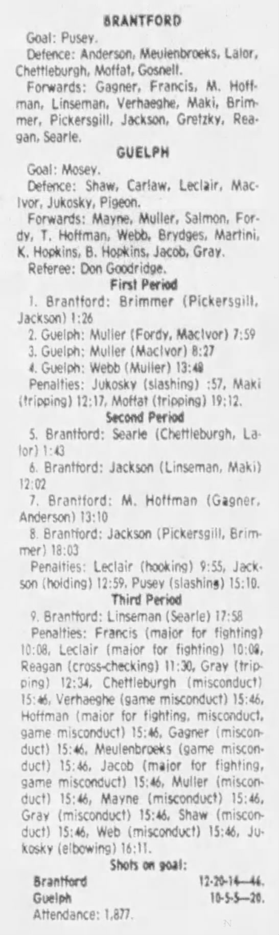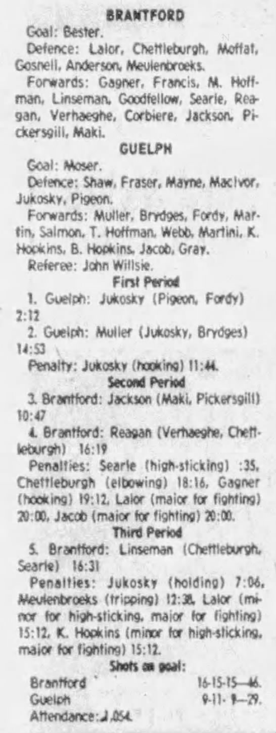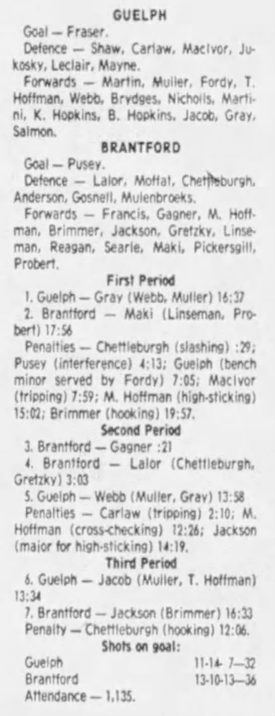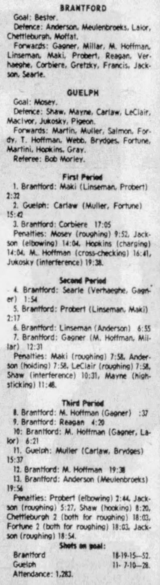 January 1 1983- Brantford @ Guelph (8-4 Brantford)