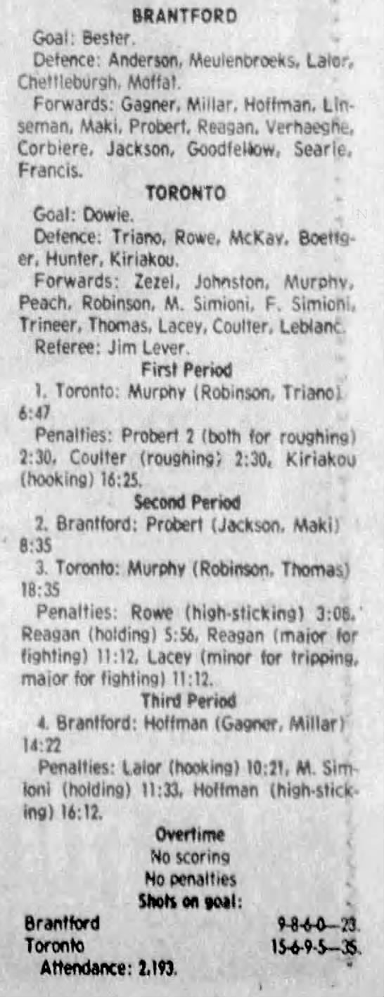 January 30 1983- Brantford @ Toronto (2-1 Toronto)