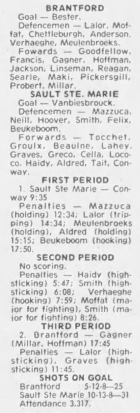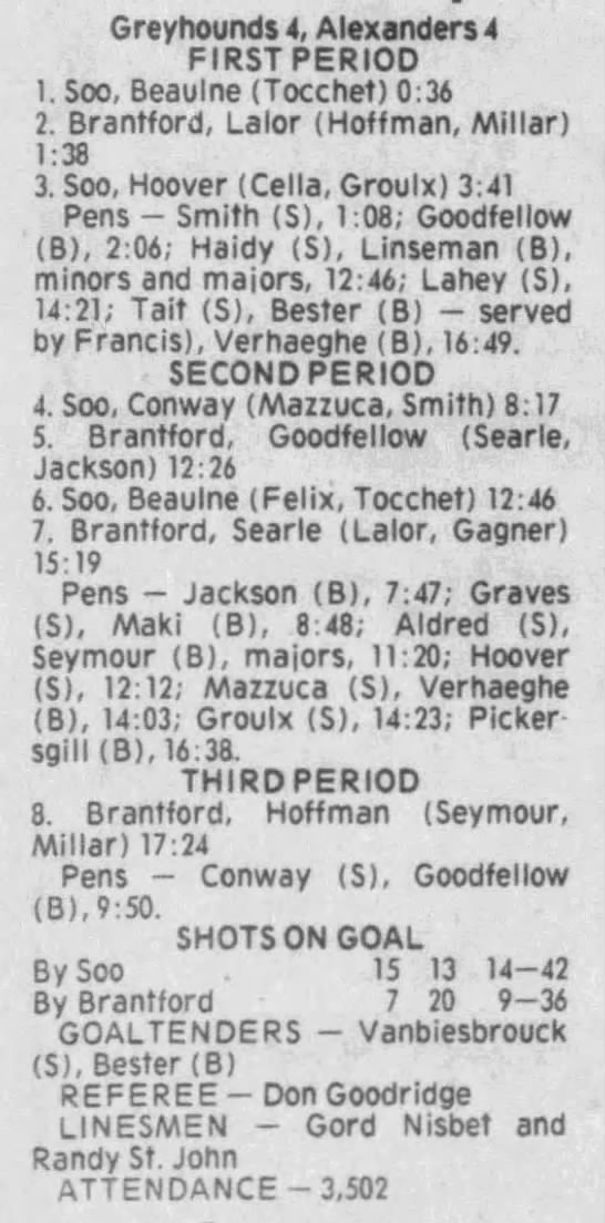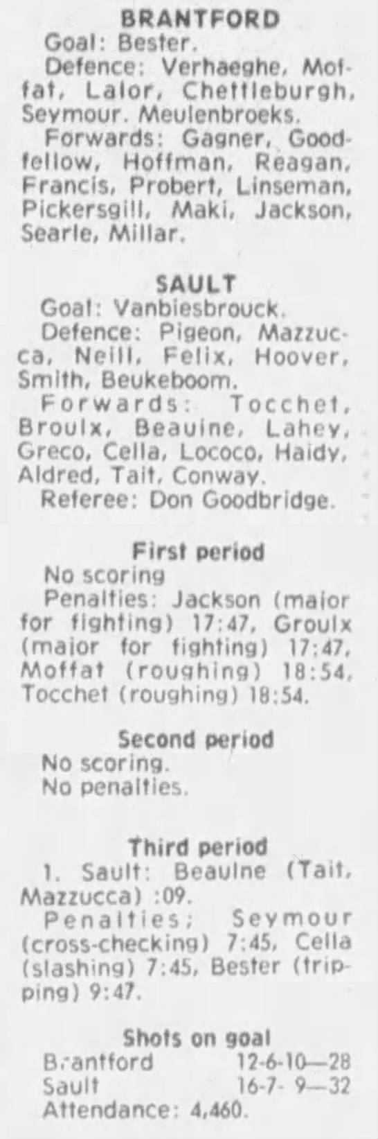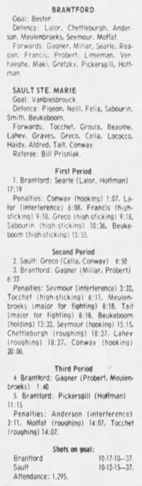 February 27 1983- Brantford @ Soo (6-3 Brantford)