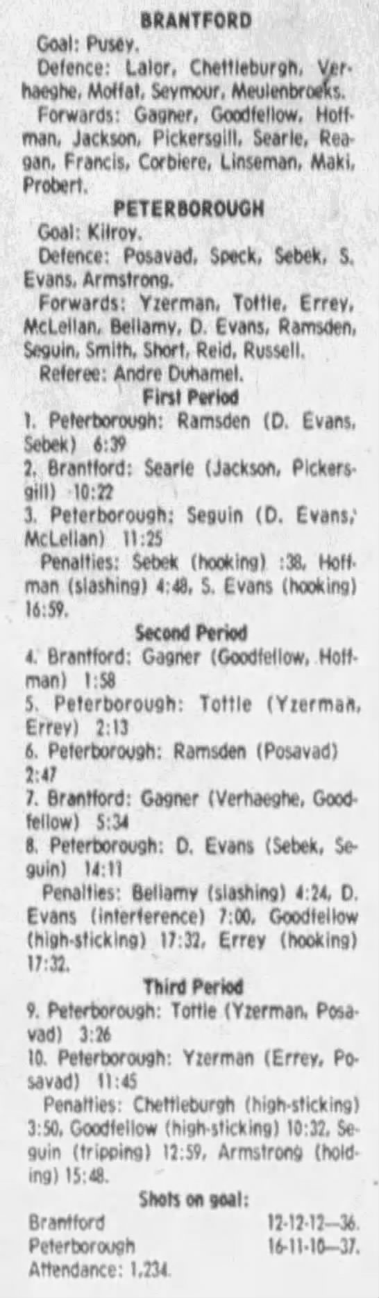 January 22 1983- Brantford @ Peterborough (7-3 Peterborough)