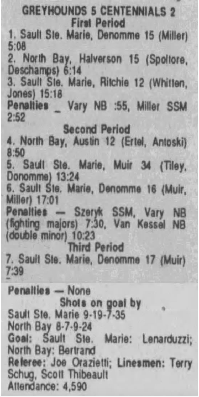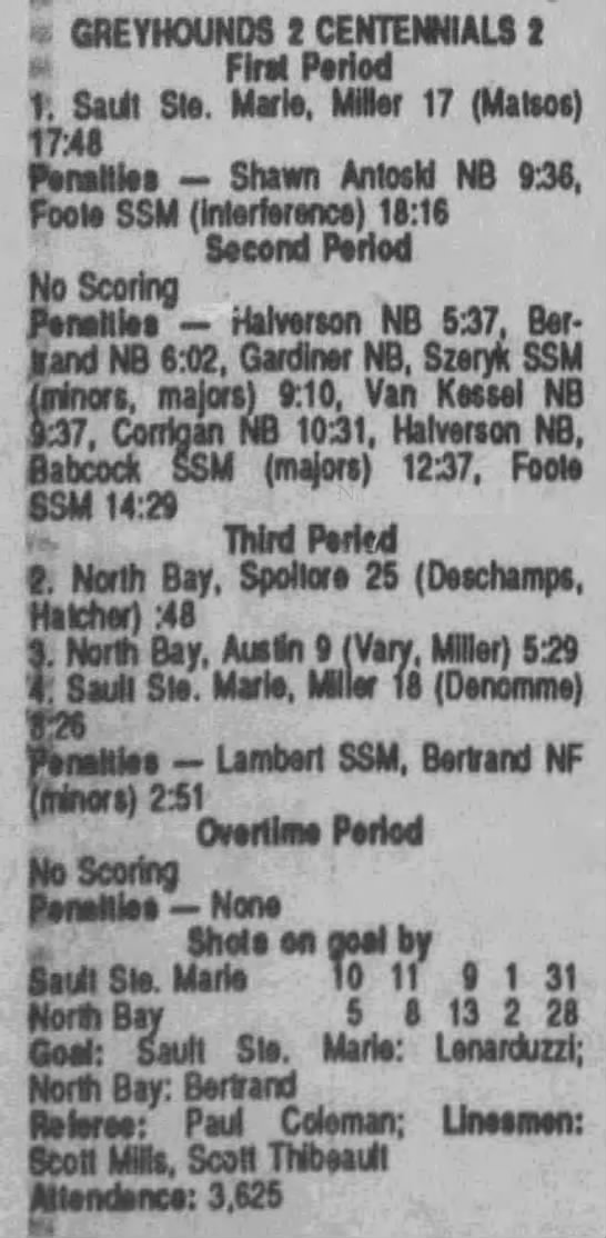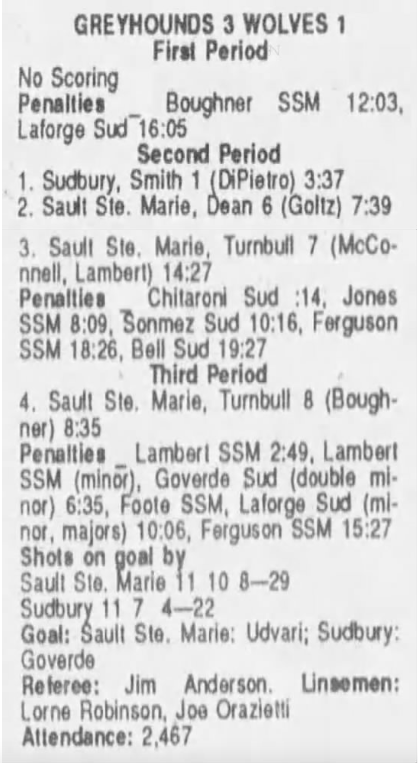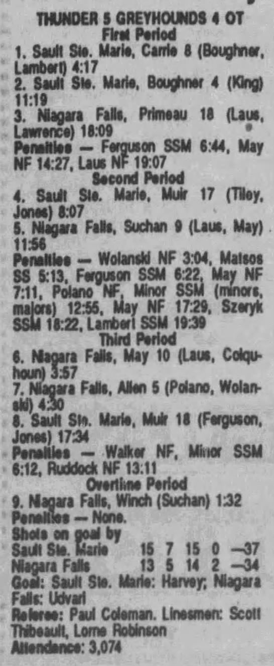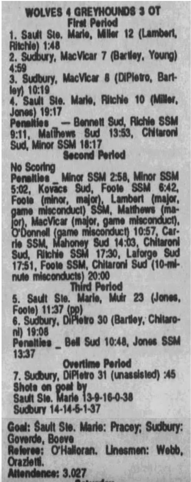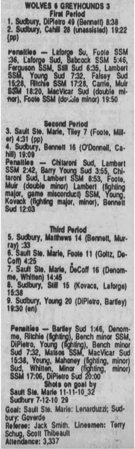 October 3 1989- Soo @ Sudbury (5-4 Sudbury)