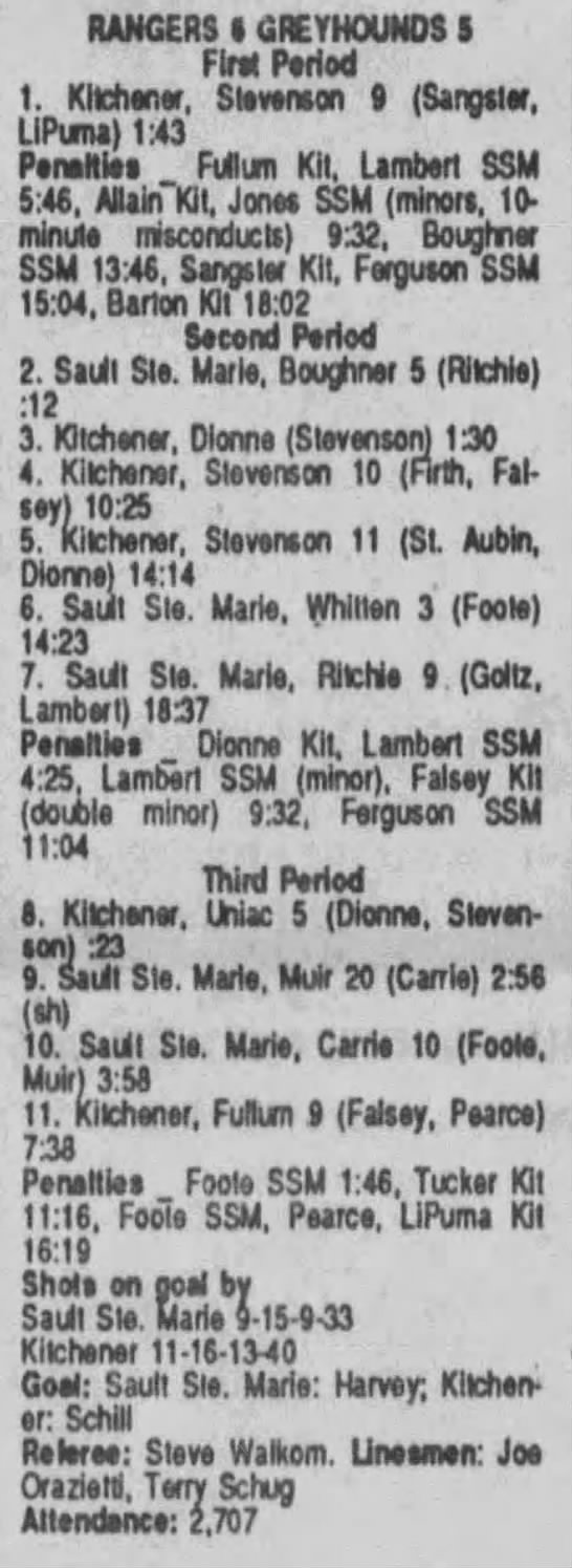 October 8 1989- Kitchener @ Soo