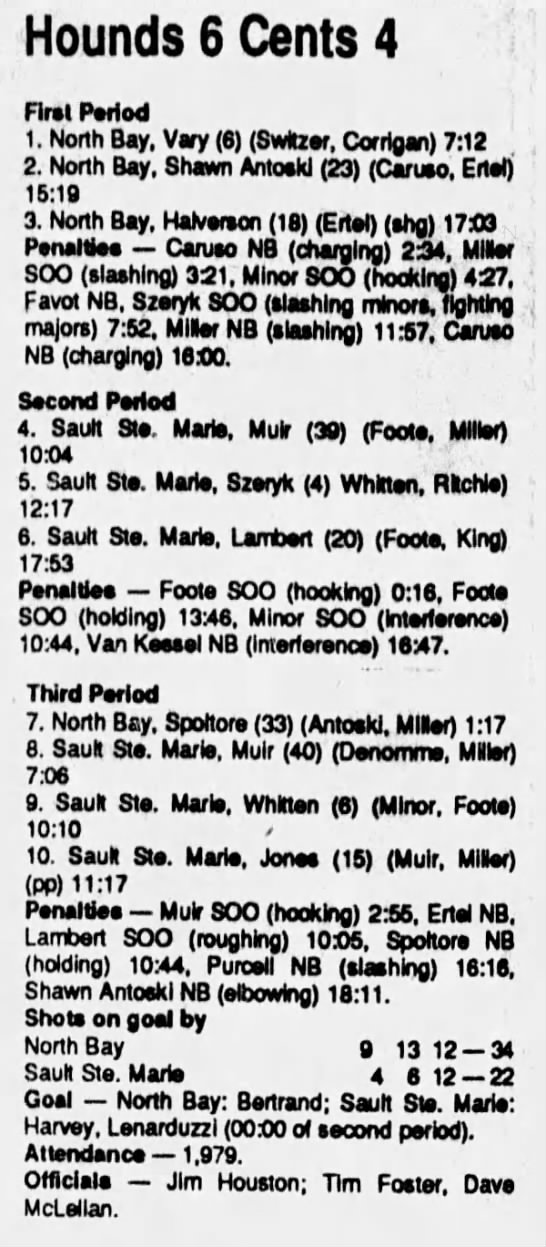 December 21 1989- Soo @ North Bay (6-4 North Bay)