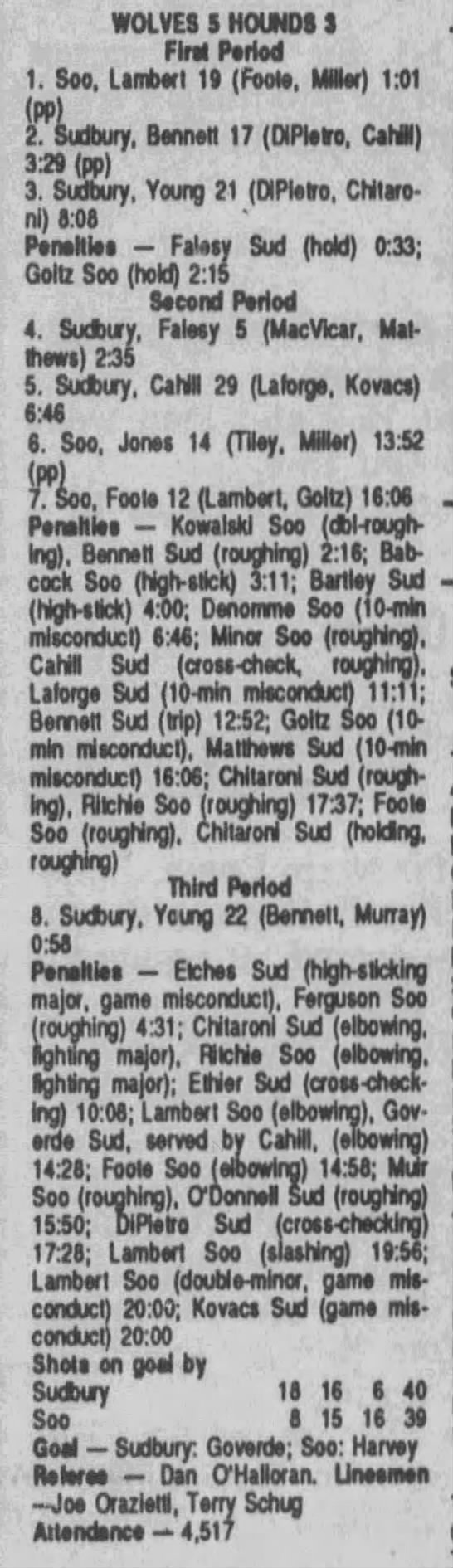 November 22 1989- Sudbury @ Soo (6-3 Soo)